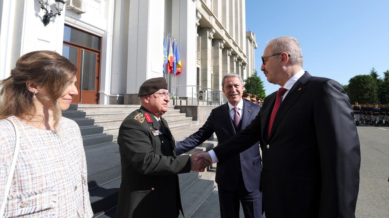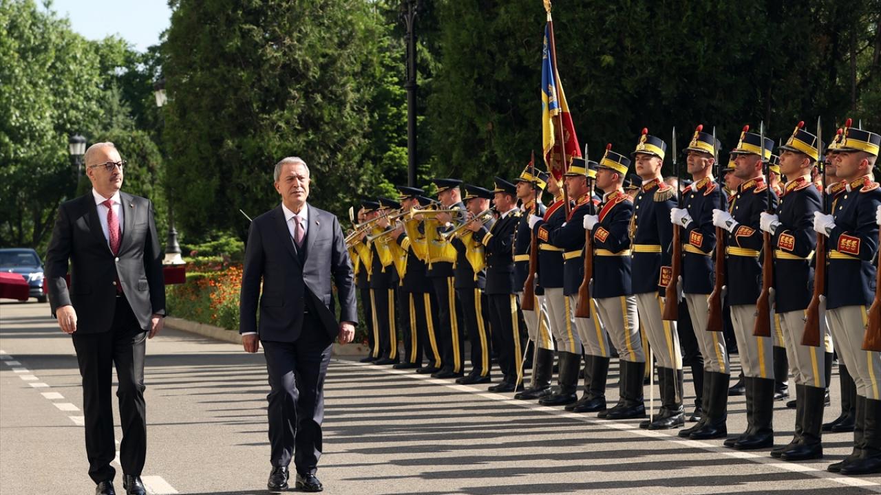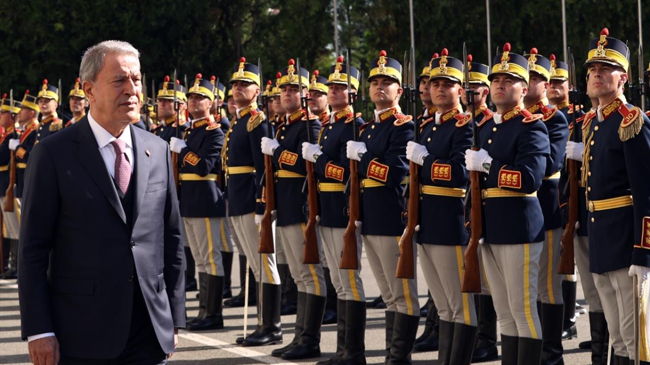 Romanya Savunma Bakanlığını ziyaret eden Akar, askeri törenle karşılandı. Bando tarafından ulusal marşların çalınmasının ardından Bakan Akar, tören birliğini Rumence selamladı.