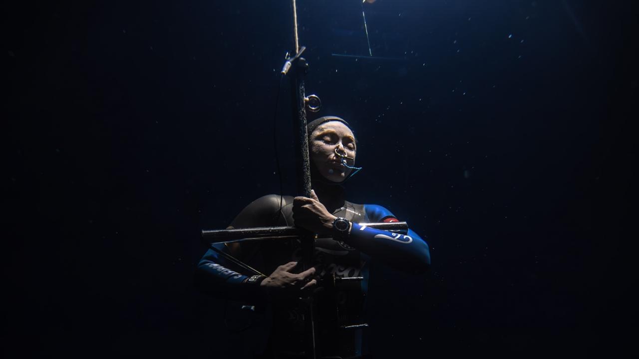 "Bu dalışı gözünüzde canlandırmanız için yaklaşık 40 katlı bir binanın en dibine inip çıktığımı varsayabiliriz. Bu derinlikler daha önce inilmemiş derinlikler. Kendimi astronot gibi hissediyorum, zaten suyun altında yer çekimi de çok az. Şu an havada hissettiğimiz 1 atmosfer, suyun altına ben 11 atmosferin üzerinde bir basınca maruz kalacağım. Her santimetrekareme 11 kilodan fazla bir basınç uygulanıyor. Vücudumun buna dayanacağını diliyorum ve antrenmanlarımızı bu şekilde yapıyoruz."