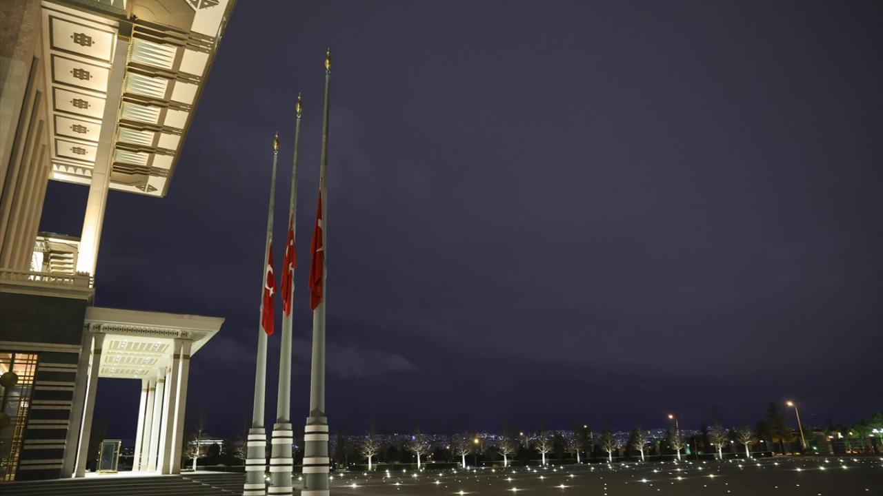 Milli yas ilanının ardından Cumhurbaşkanlığı Külliyesi ile tüm yurttaki kamu binalarında ve dış temsilciliklerde gönderdeki Türk bayrakları yarıya indirildi.