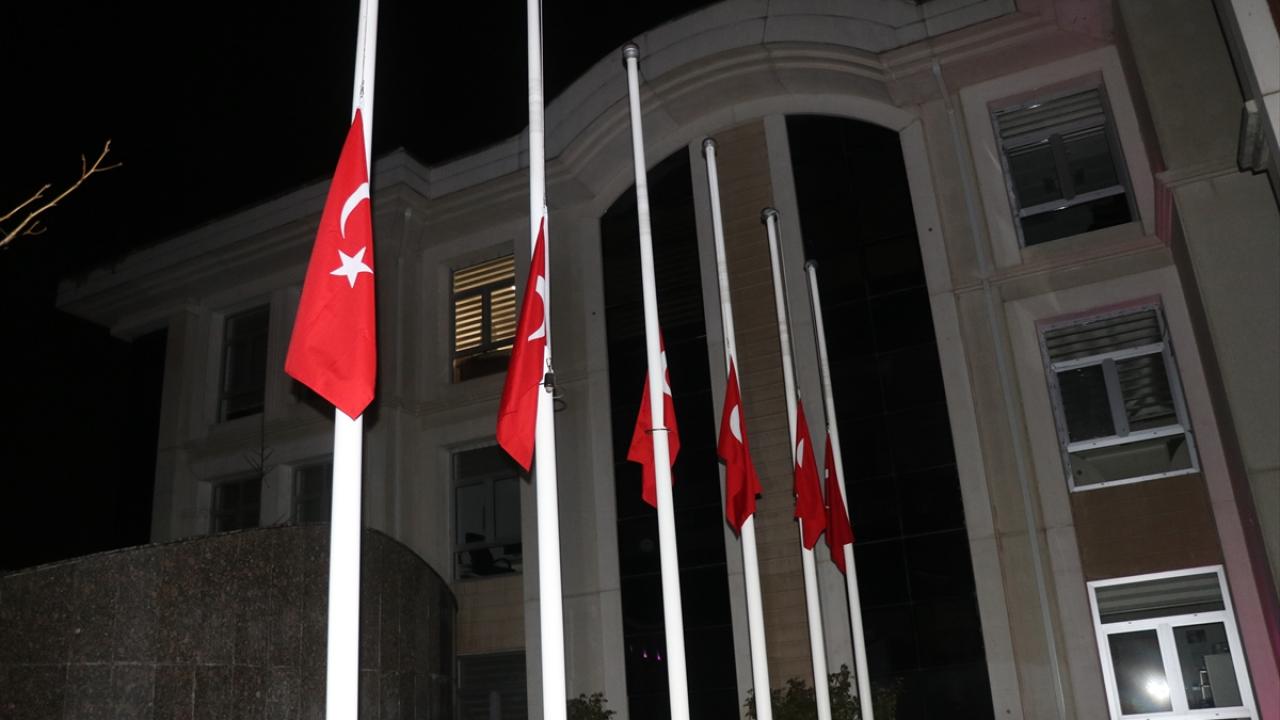 Milli yas ilan edilmesinin ardından Türk bayrakları yarıya çekildi