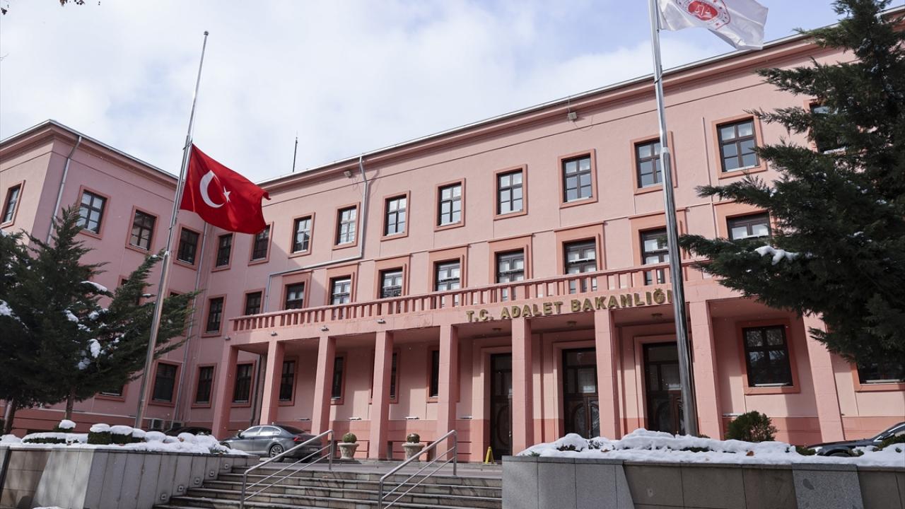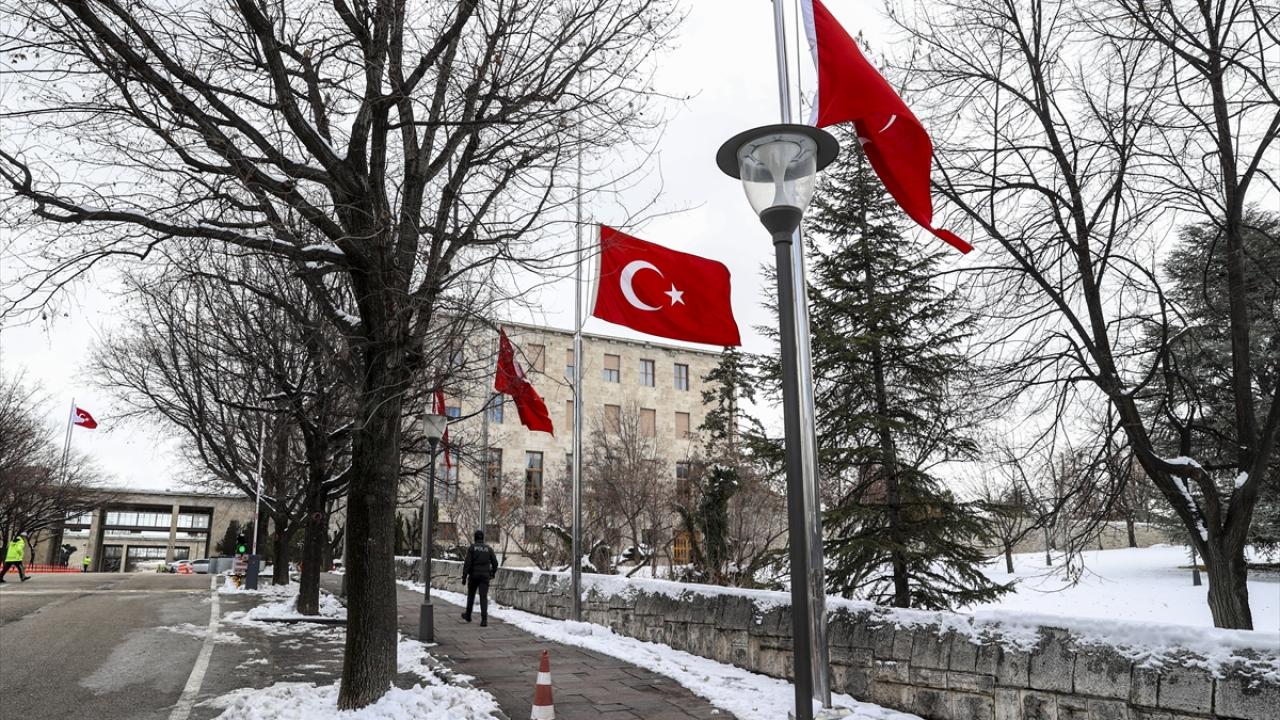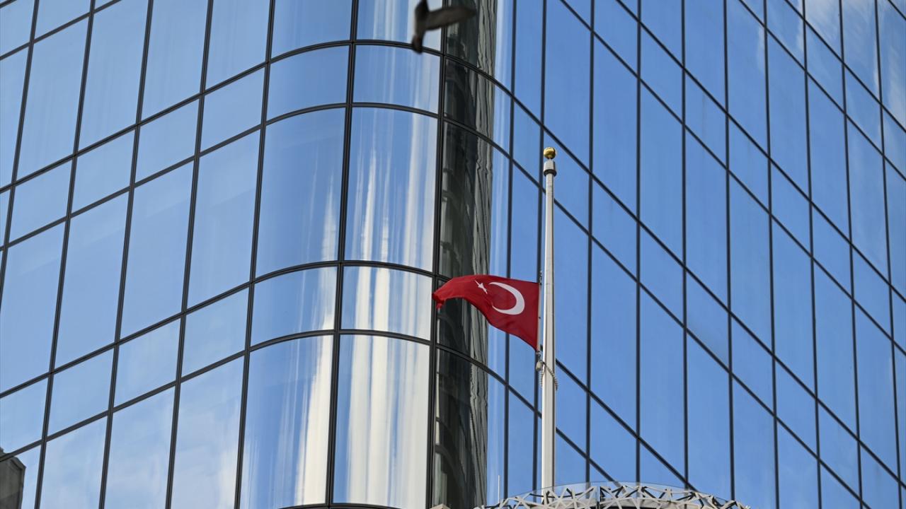 Milli yas ilanının ardından Adalet Bakanlığı binasında gönderdeki Türk bayrağı yarıya indirildi.