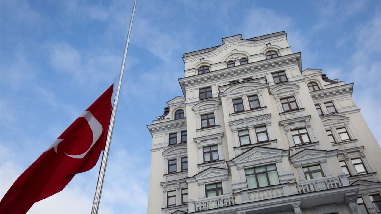 Milli yas ilanının ardından Türkiye`nin Washington Büyükelçiliği`nde Türk bayrağı yarıya indirildi.