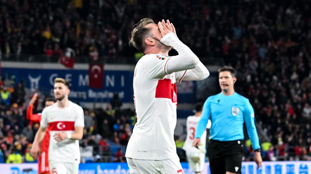 42. dakikada milli takım beraberlik golüne yaklaştı. Ferdi Kadıoğlu`nun sağdan yaptığı ortada ön direkte yükselen Yusuf Yazıcı kafayla topu arka bölüme aktardı. Kale sahası önündeki Kerem Aktürkoğlu`nun topu düzeltip vuruşunda, meşin yuvarlak az farkla üstten dışarı çıktı.