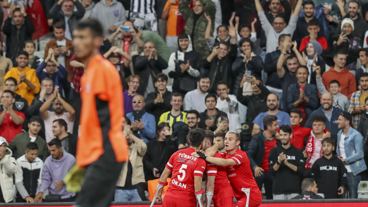 Ay-yıldızlı futbolcular, maç bitiminde büyük sevinç yaşadı. Futbolcular, tribüne giderek sevinçlerini taraftarlarla paylaştı.
