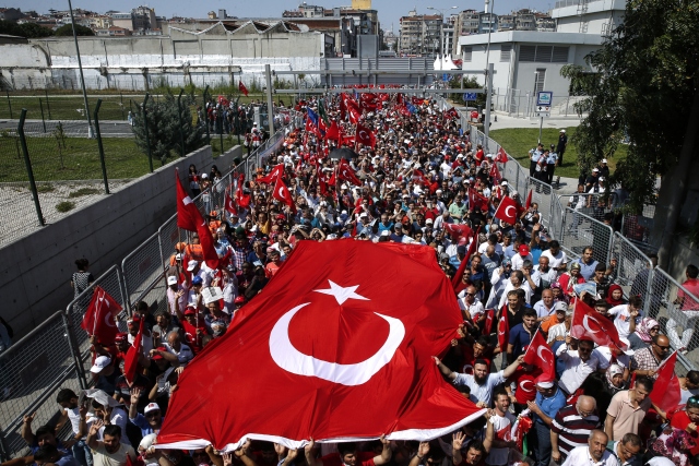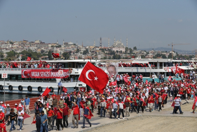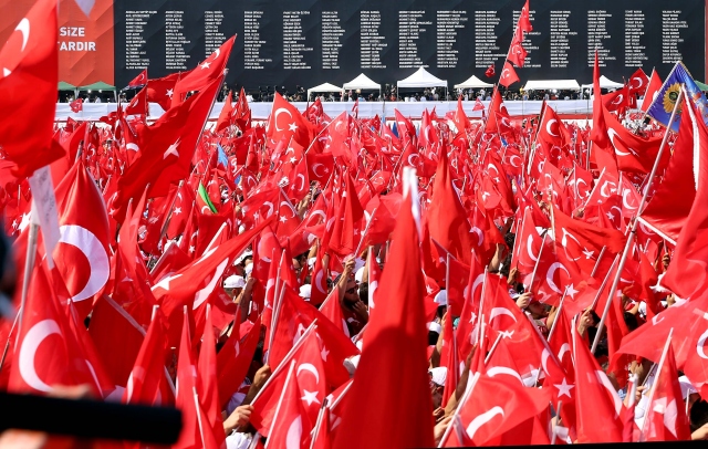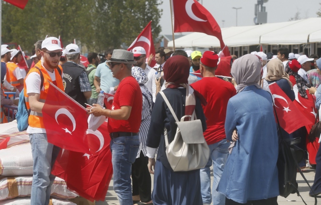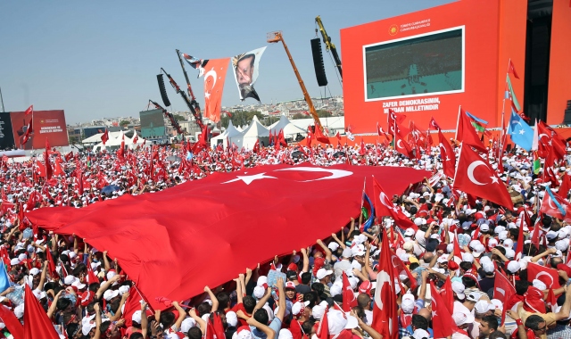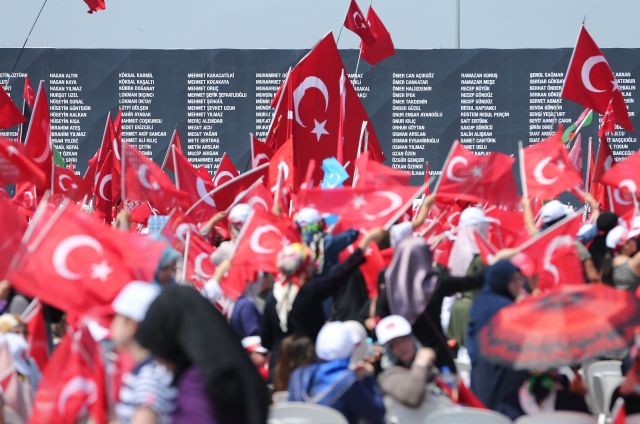 İstanbul Yenikapı Miting Alanı'nda Cumhurbaşkanlığı himayesinde düzenlenen "Demokrasi ve Şehitler Mitingi"ne destek vermeye gelen vatandaşlar alanı doldurdu.
