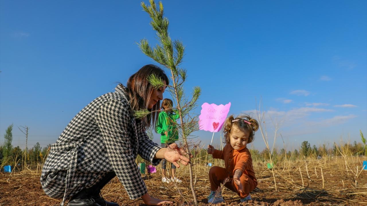 Proje ile ADEM`de mesleki eğitim gören kadınlar ilkokul ve ana sınıflarında okuyan çocuklarıyla Dicle Üniversitesinin ağaçlandırma sahasında, terör saldırılarında şehit olan öğretmenler anısına fidan dikiyor.