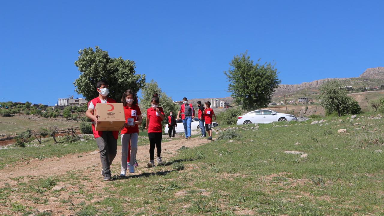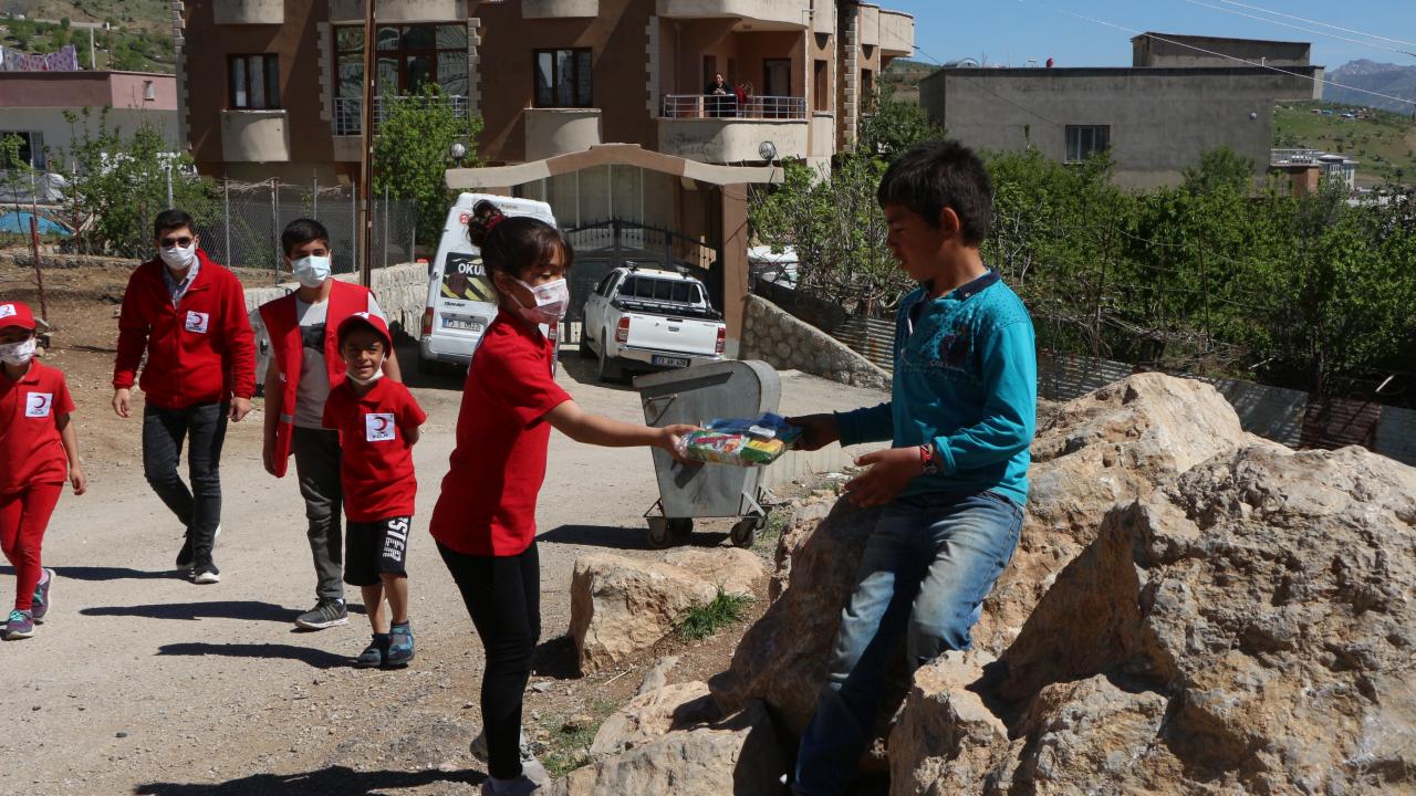 Yardım dağıtan miniklerden Furkan Som ise “Kızılay Şırnak Şubesi gönüllülerimiz ile birlikte ihtiyaç sahibi ailelere gıda yardımı, çocuklara da hediye paketlerini ulaştırdık. Biz çocuklar olarak okula gitmek, sokaklarda eskisi gibi oynamak, kalabalık sofralarda yemeğimizi arkadaşlarımızla yemek istiyoruz. Günlerimiz artık zor geçse de engelleri Kızılay`dan gelen büyüklerimizle aştık" dedi.