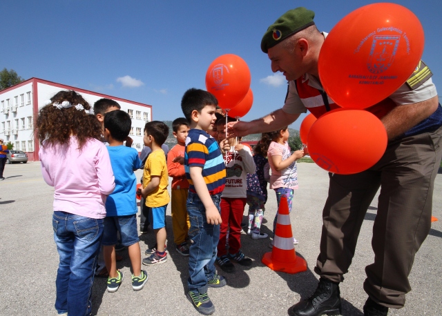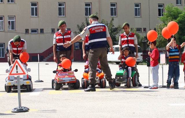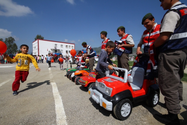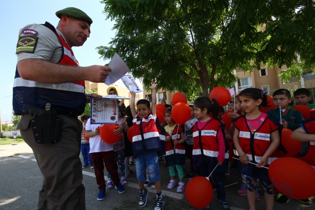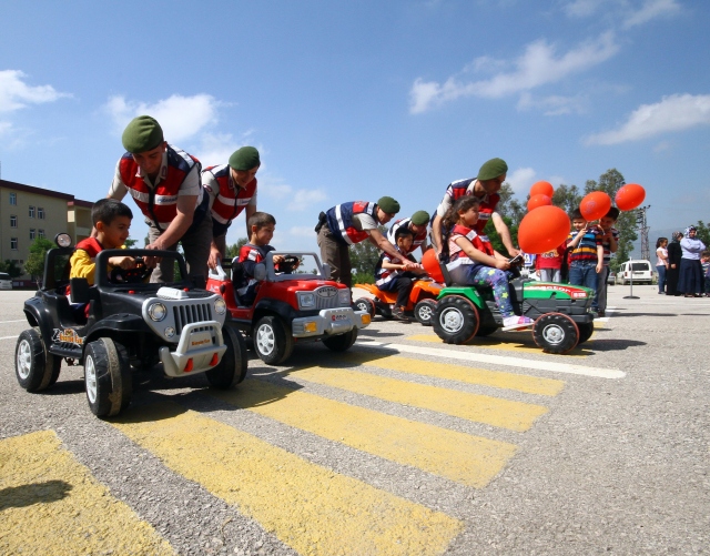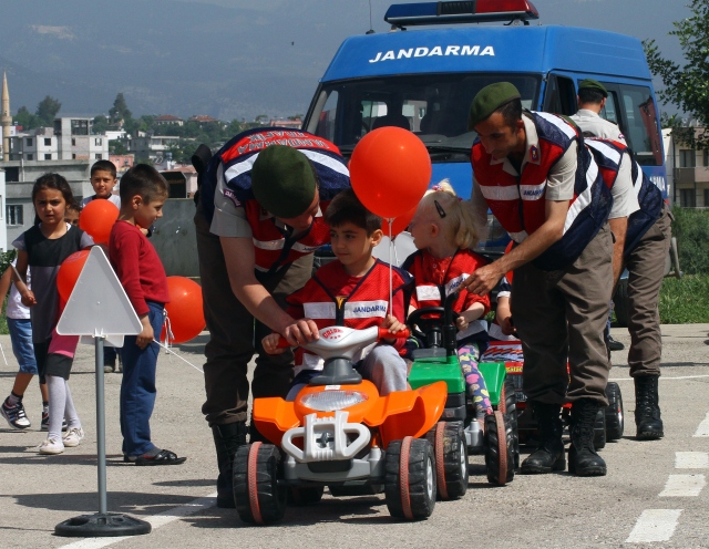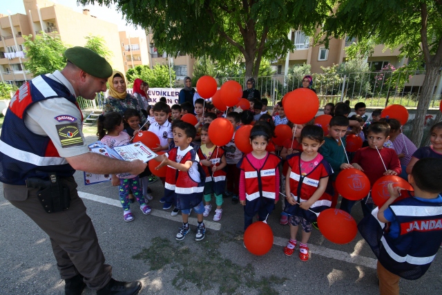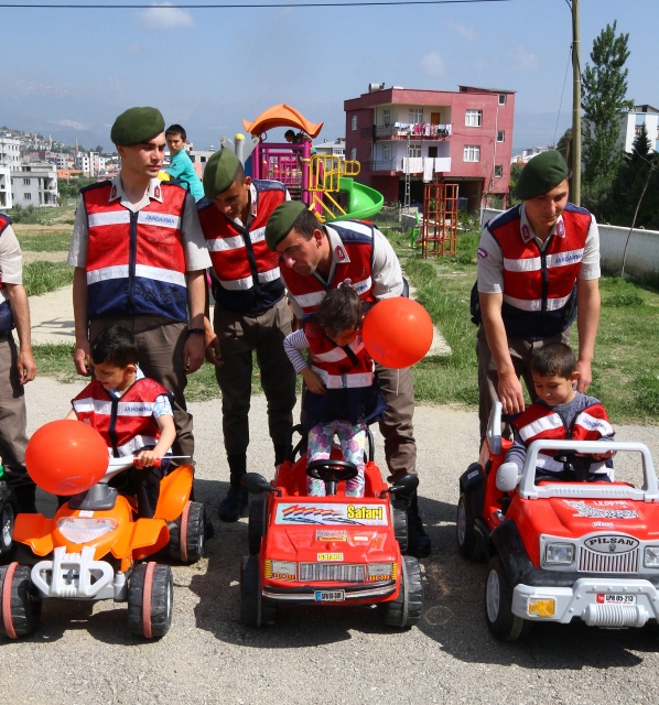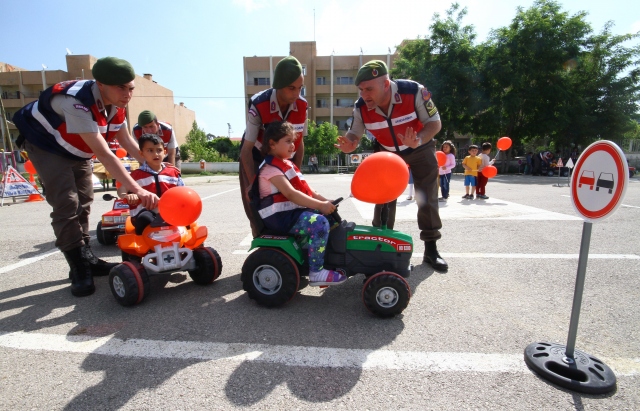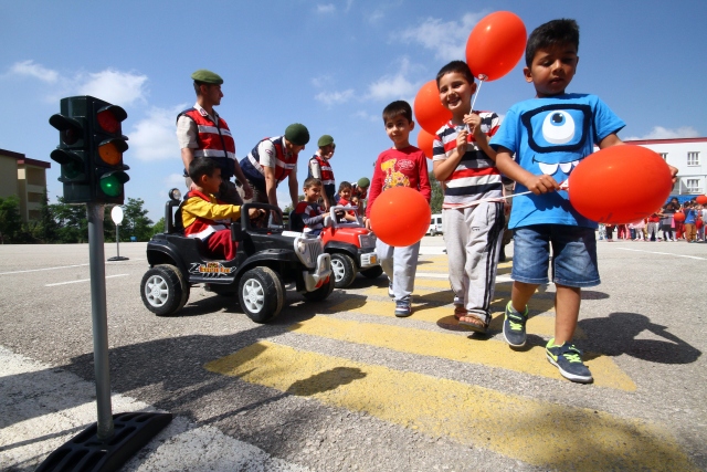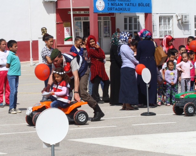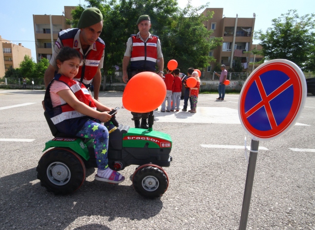 Adana İl Jandarma Komutanlığı ekiplerince anaokulu öğrencilerine, akülü arabalarla bir okulun bahçesinde oluşturulan özel parkurda trafik eğitimi verildi.