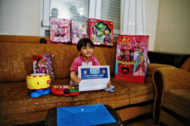 Antalya'da sol ayağını bebekken kaybeden ve alüminyum doğrama ustası babasının evin tavanına yaptığı düzenekle yürümeye başlayan, Cumhurbaşkanı Recep Tayyip Erdoğan'ın destek sözü verdiği 3,5 yaşındaki Özge Yıldırım'a, Şırnak'ta görevli komando birliği bir koli dolusu oyuncak gönderdi.