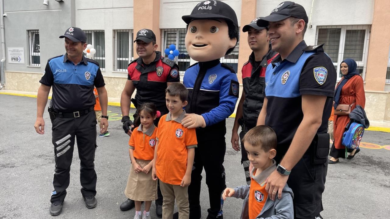 İstanbul`da eğitimin ilk gününde polisler miniklerin yanında yer aldı