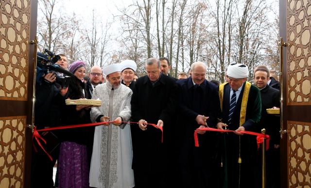 Diyanet İşleri Başkanı Mehmet Görmez ve Rusya Müftüsü Şeyh Gaynettün,Türkiye Diyanet Vakfı tarafından yaptırılan Minsk Cami'sinin açılışına katıldılar.