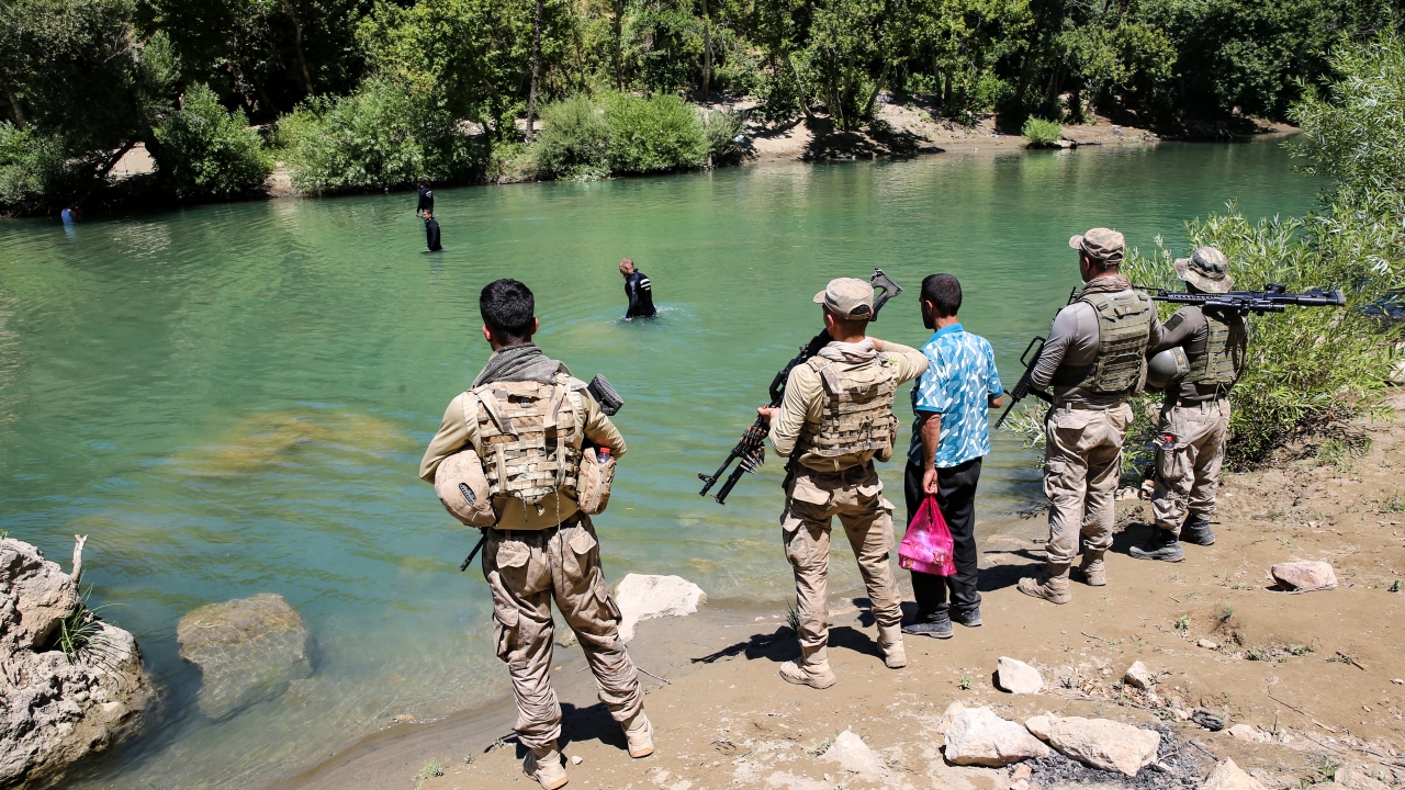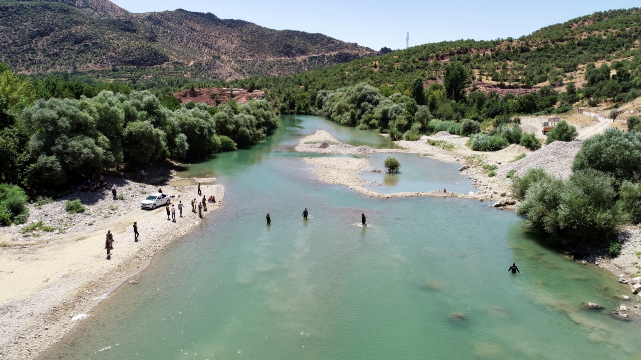 Köye 2 kilometre uzaklıktaki Dicle Nehri kenarında arama yapan AFAD ve UMKE ekipleri tek tek ağaçların altını kontrol ediyor, bir ize ulaşmaya çalışıyor.