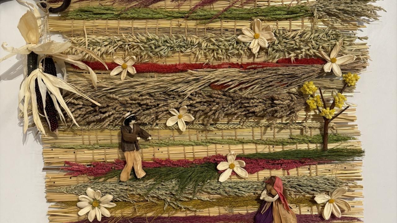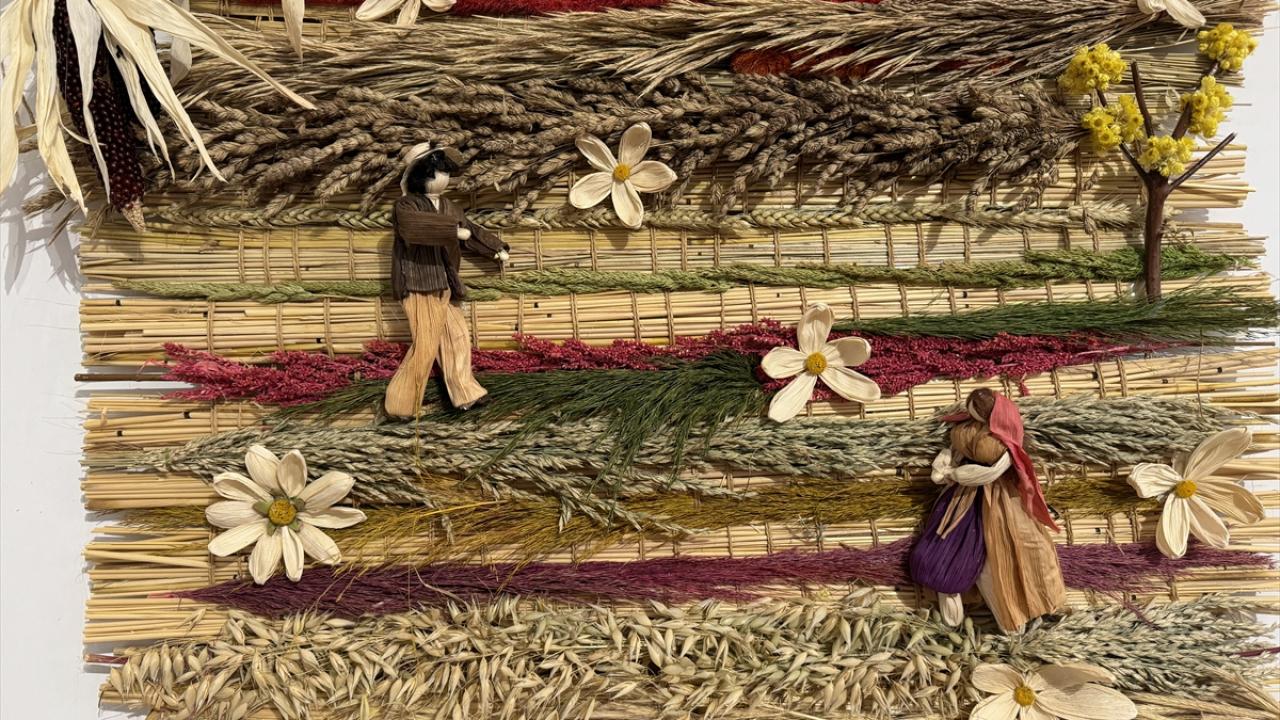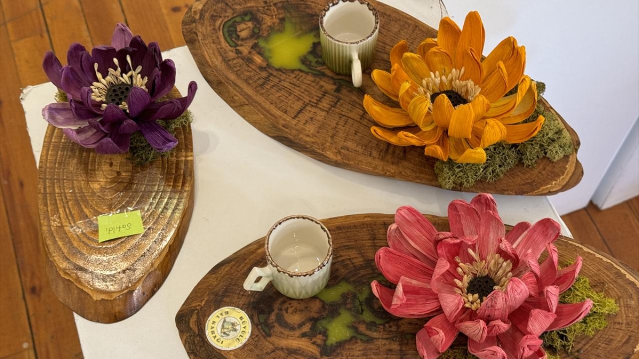 Yaklaşık 25 yıldır öğretmenlik yapan Karaoğlu, evinde oluşturduğu atölyesinde kendi geliştirdiği teknikle doğadan topladığı çiçek, tahta parçaları, saman, kozalak ve farklı otları mısır yaprakları ve koçanlarla harmanlayarak çeşitli ürünler tasarladı.