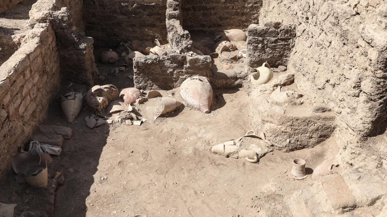 Antik kentin odalarında günlük hayatta kullanılan malzemeler olduğuna işaret edildi.