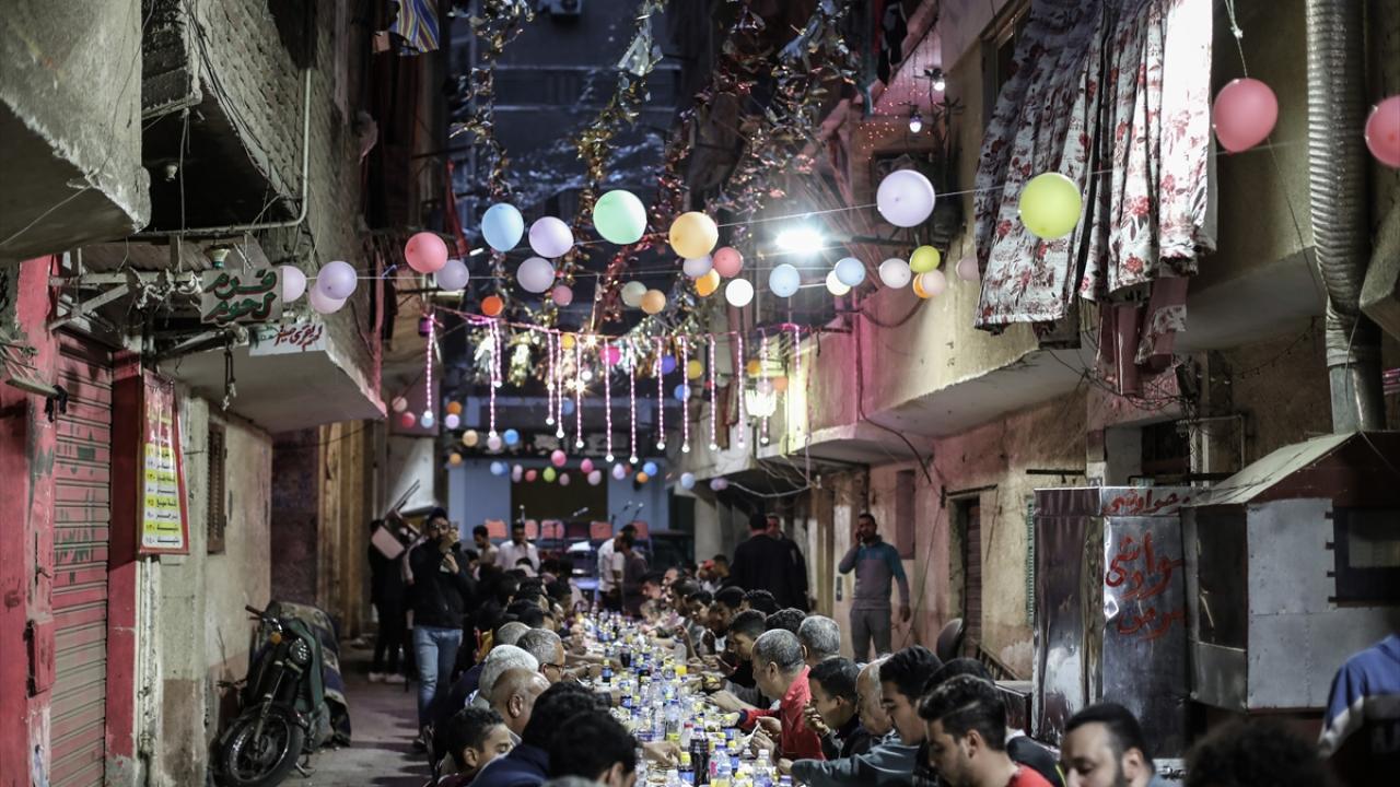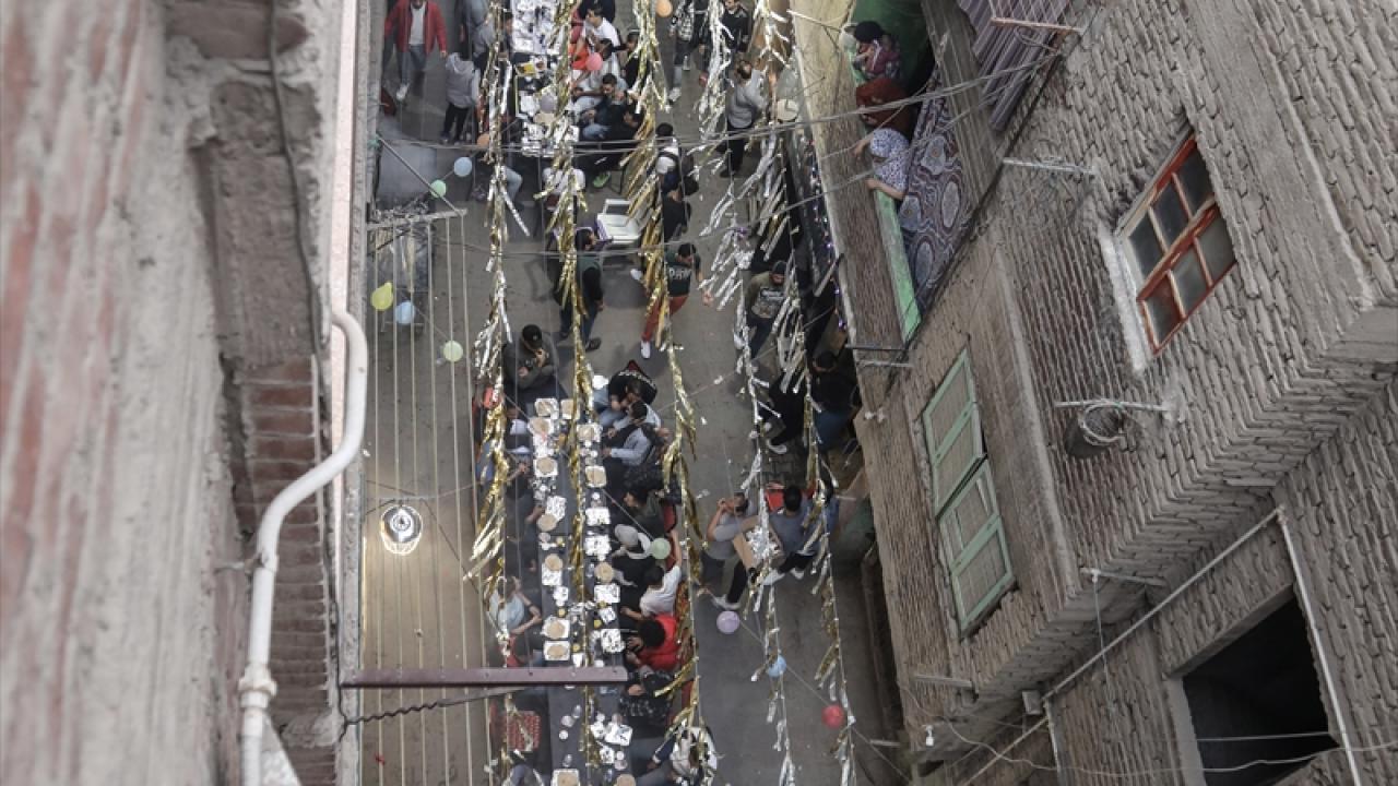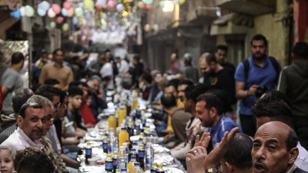 Mısır’ın başkenti Kahire’nin Matariyye semtinde, her yıl Ramazan ayında kurulan 70 metrelik iftar sofrasında yüzlerce semt sakini bir araya gelerek orucunu açıyor.