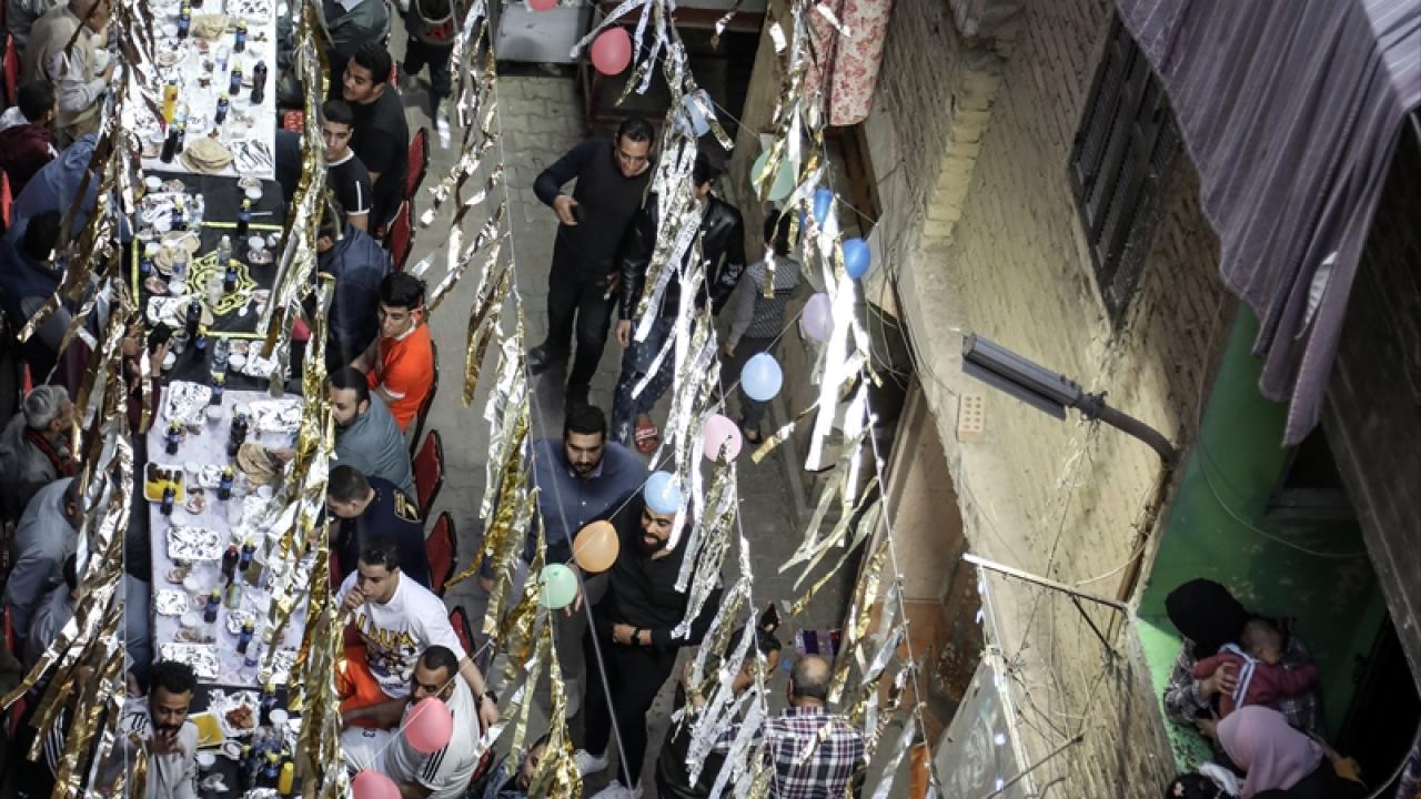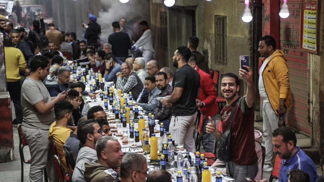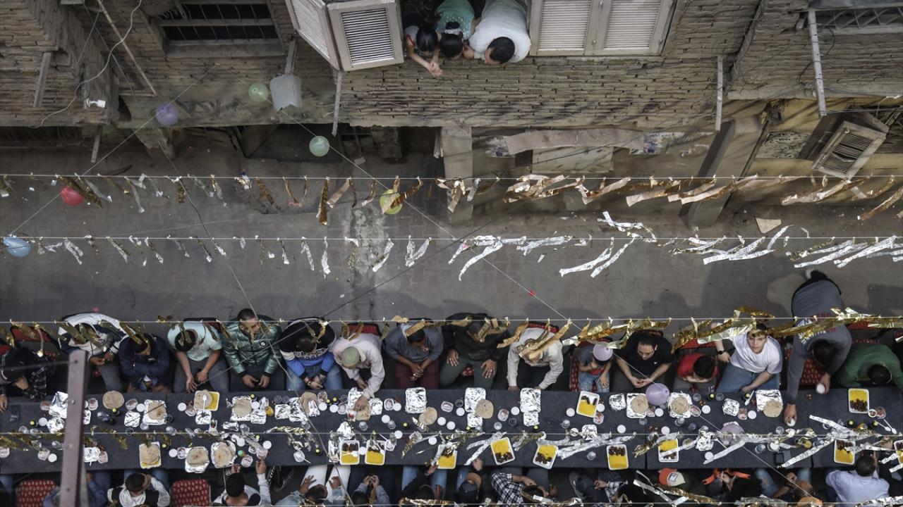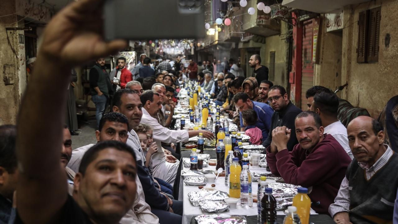 Mısır’ın başkenti Kahire’nin Matariyye semtinde, her yıl Ramazan ayında kurulan 70 metrelik iftar sofrasında yüzlerce semt sakini bir araya gelerek orucunu açıyor.