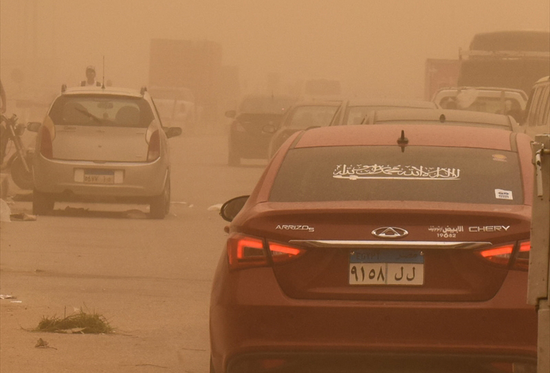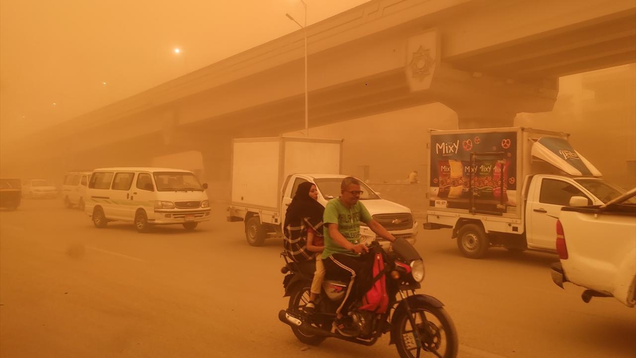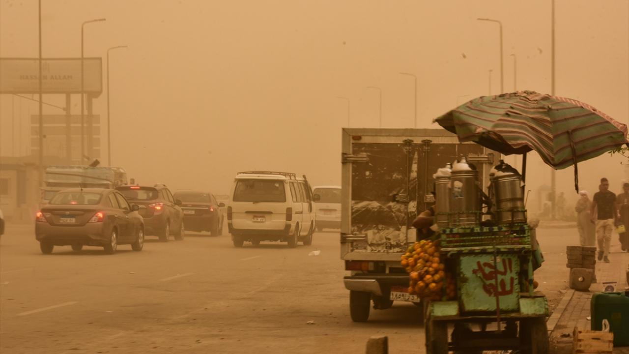 Mısır'ın Gize kentinde etkili olan kum fırtınası yaşamı olumsuz etkiledi.