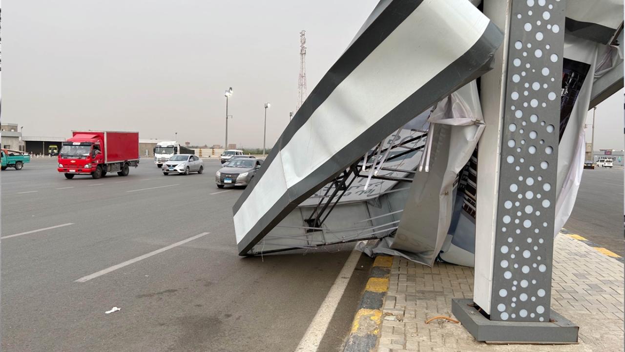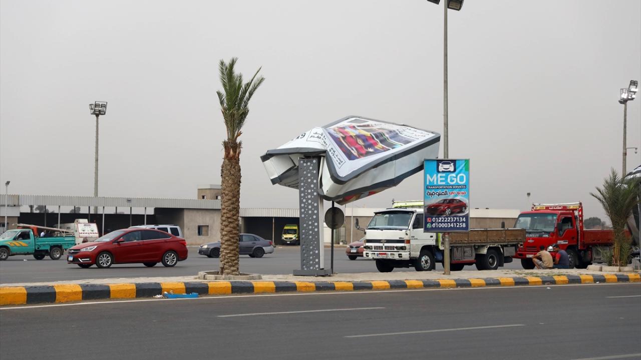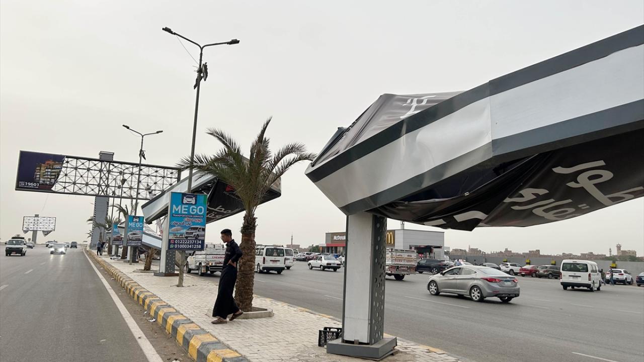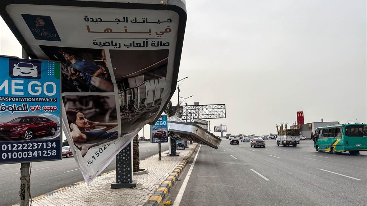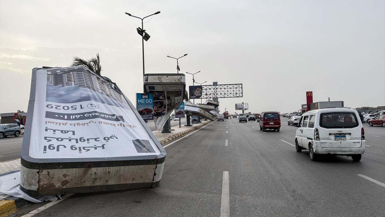 Mısır`ın Qalyubia vilayetinin Benha kentinde etkili olan kum fırtınası sebebiyle, ana yoldaki tabelalar devrildi.