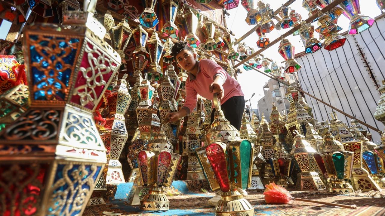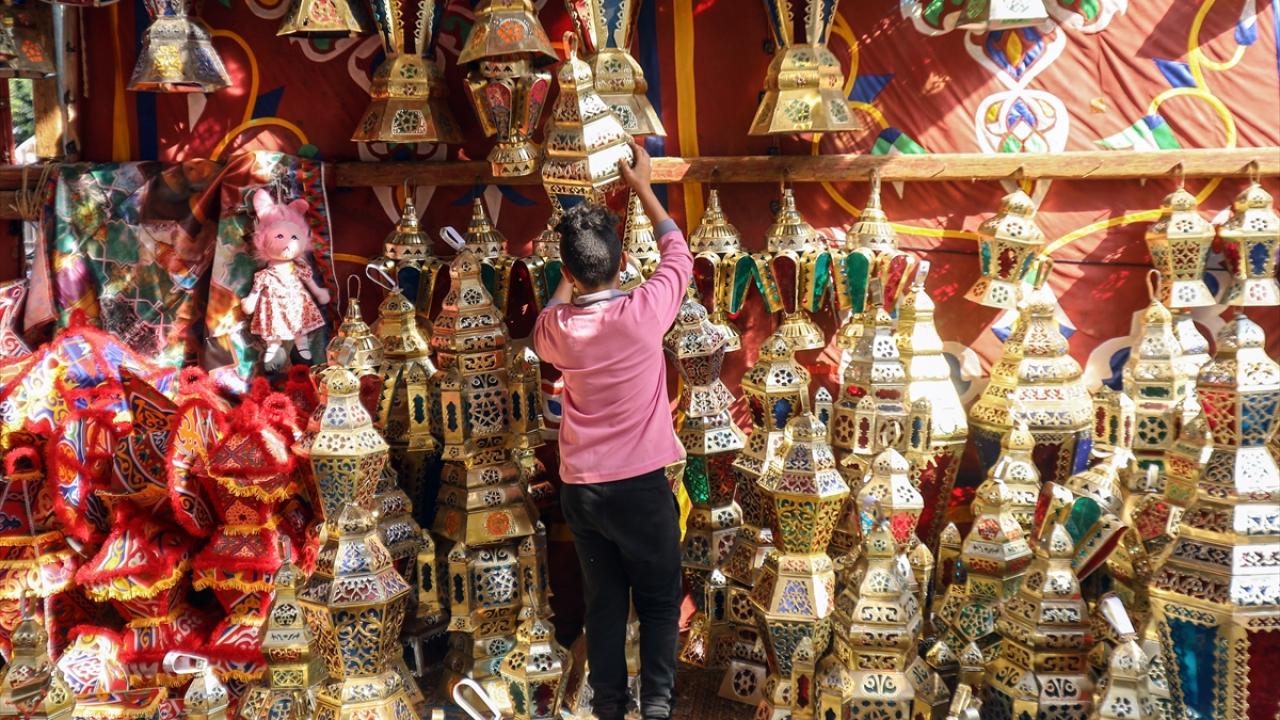Kahire`nin eski bölgelerinde Sayyidah Zaynab`daki tezgahları kaplayan çeşitli renk, desen ve büyüklükteki fenerler, yaklaşan Ramazan ayında, insanların evlerini ve sokakları süslemek üzere müşterilere sunuluyor.