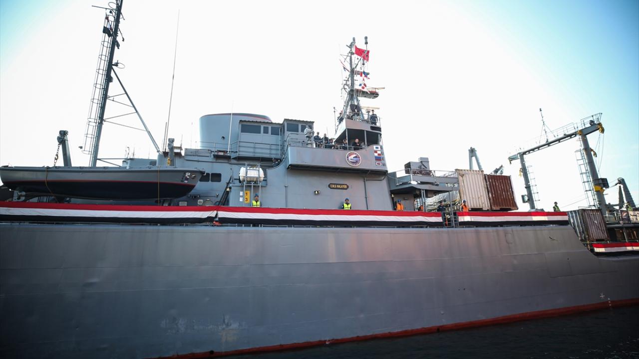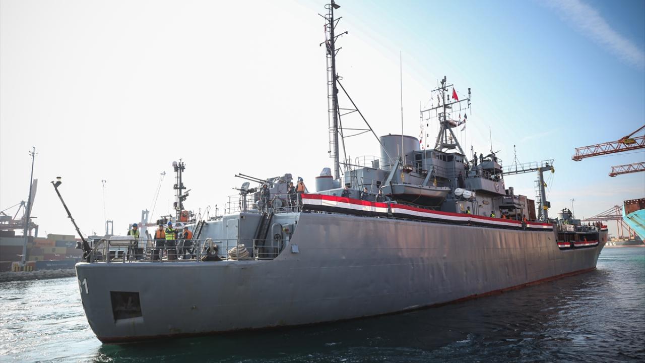 Mısır donanması bünyesindeki 105 metre uzunluğa ve 40 metre yüksekliğe sahip gemi, 2 günlük yolculuğunun ardından Mersin Uluslararası Limanı`na ulaştı.
