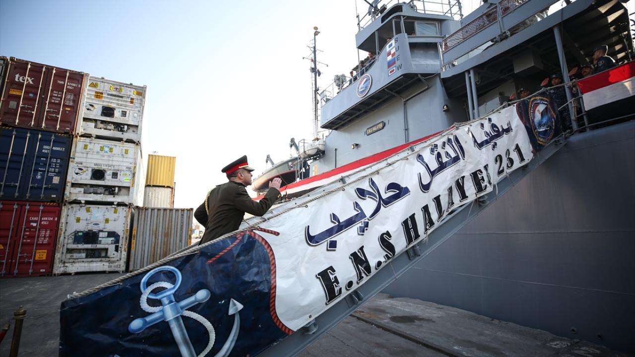 Mısır'ın askeri gemisi depremzedelere 650 tonluk yardım taşıdı