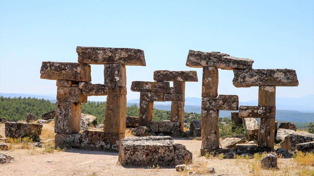 Antik kentin en uç kısmında yer alan blok taşlardan oluşan üç yapı ise İngiltere`de bulunan Stonehenge`i andıran görünümüyle ilgi görüyor.