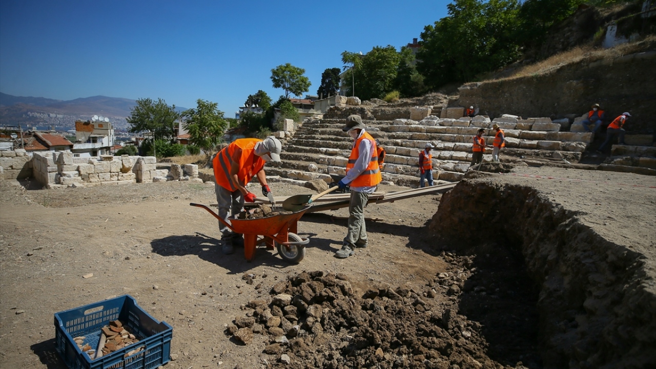 Kültür ve Turizm Bakanlığının izniyle İzmir Katip Çelebi Üniversitesi tarafından Smyrna Antik Kenti'nde yürütülen çalışmalarda binlerce yıl öncesine ait eserler gün yüzüne çıkartılıyor.