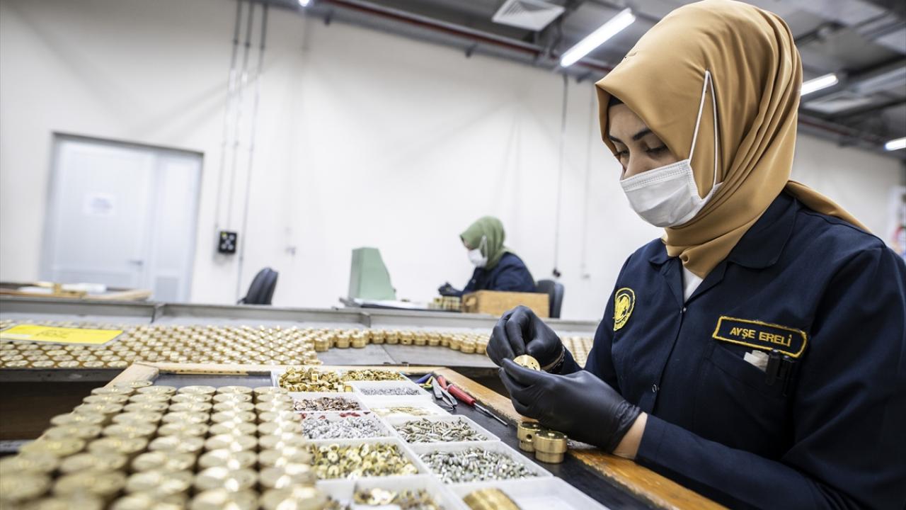Kurumda görevli kadınlar, mermi tapasından silah montajına, fişek üretiminden mühimmat yapımına kadar üretim sahalarının tamamında çalışıyor.