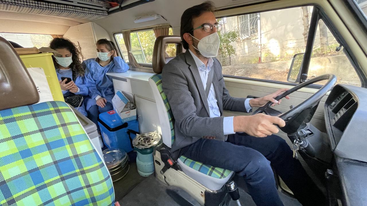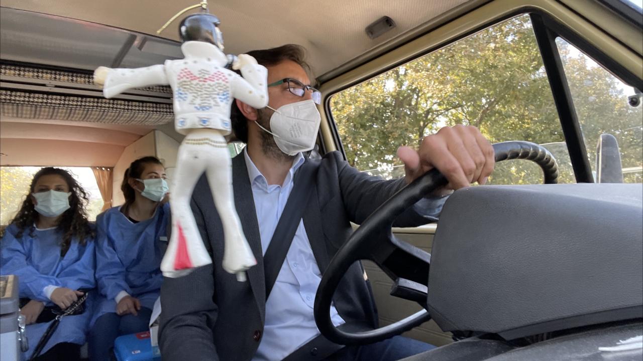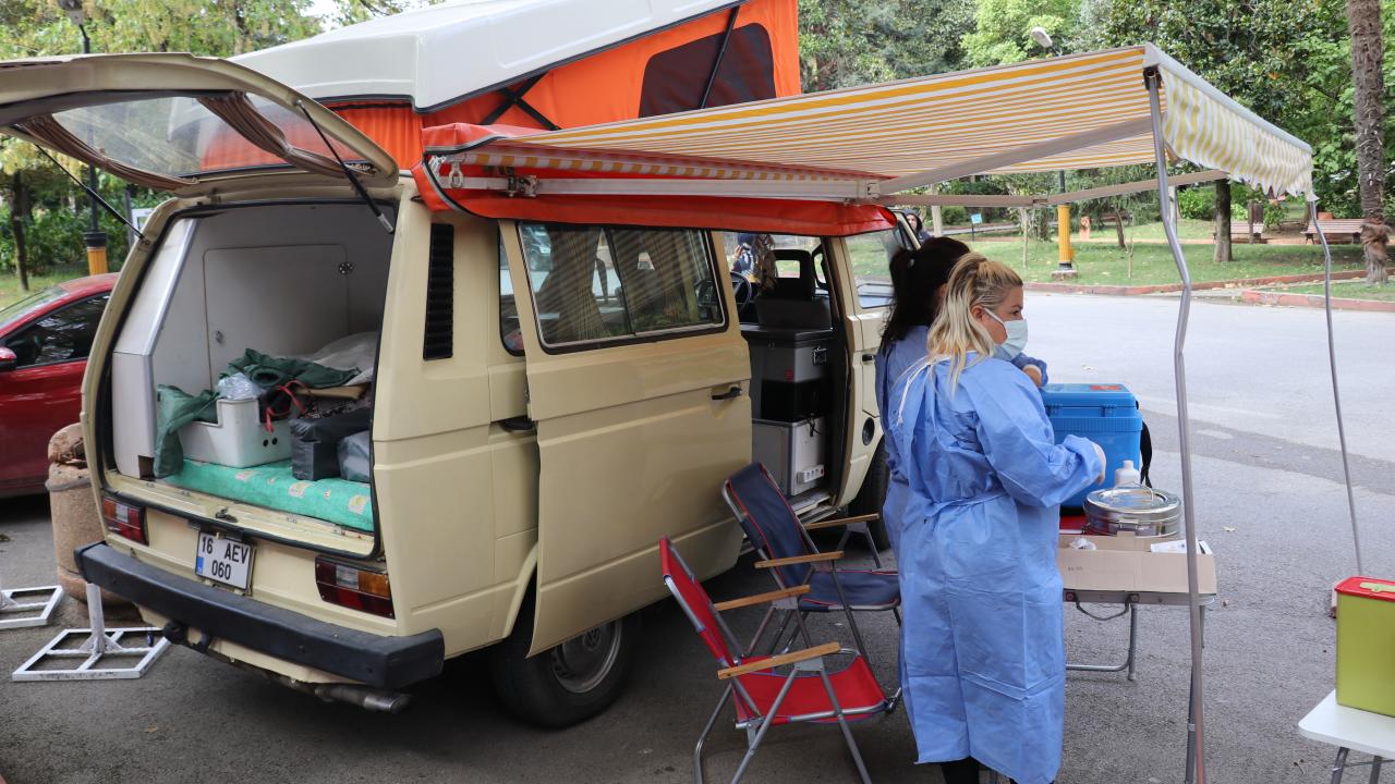 Eski minibüsü küçük bir karavana çeviren doktor Ömer Öktem, "Fahriye" adını verdiği aracıyla köy köy dolaşıp, ekibiyle yeni tip koronavirüs (Covid-19) aşı çalışmalarını gerçekleştiriyor.