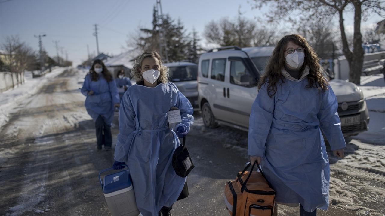Zorlu kış şartlarına rağmen ülkenin dört bir yanında durmaksızın çalışan mobil aşı ekipleri, karlı yolları aşarak sağlık kuruluşlarına gidemeyenlerin COVID-19 aşılarını evlerinde yapıyor.