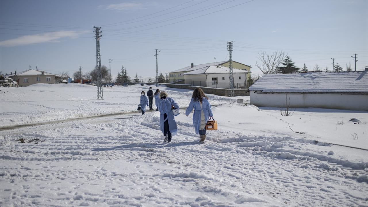 Ankara`nın Gölbaşı ilçesinde, yoğun kar nedeniyle yolları kapanan Bezirhane köyünde de hastanelere gidemeyenlerin aşıları mobil ekipler tarafından yapıldı.