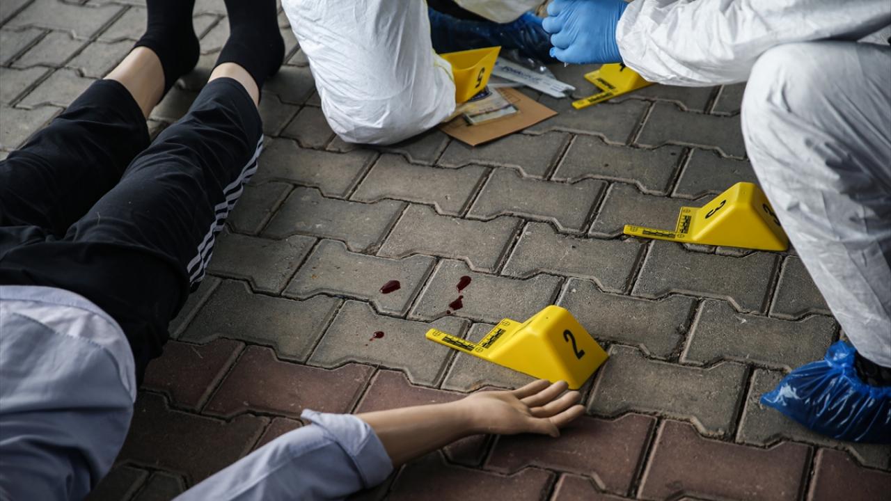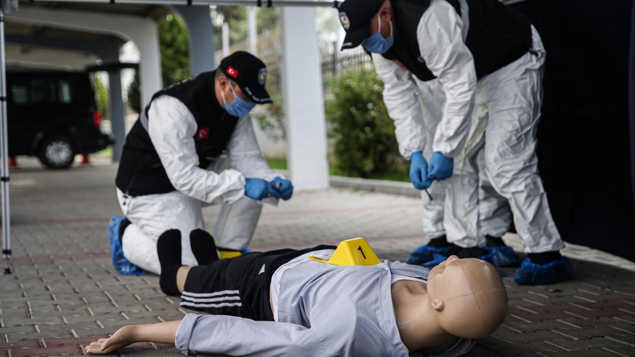 Törenin ardından, Olay Yeri İnceleme Şube Müdürlüğüne bağlı ekipler, senaryo gereği bir cinayet olayında delil araştırması yaptı.