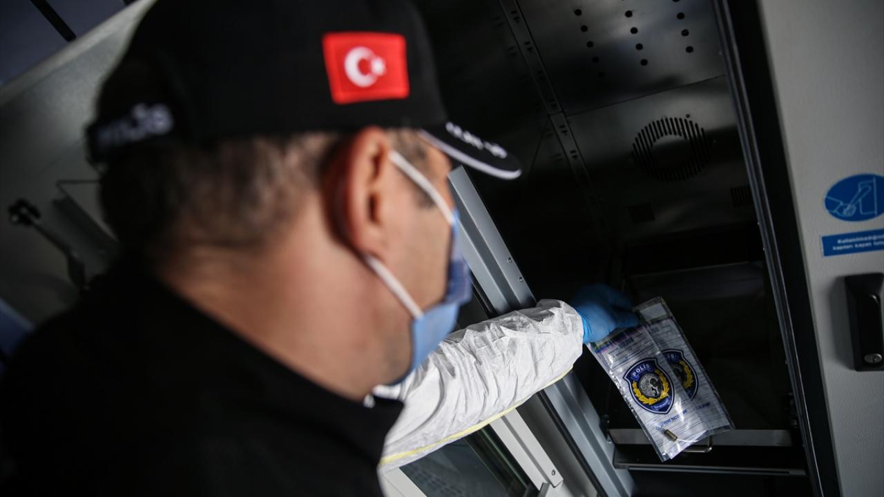 Ekipler, faili tespit etmek için elde edilen bulguları mobil kriminal polis laboratuvarına götürdü.
