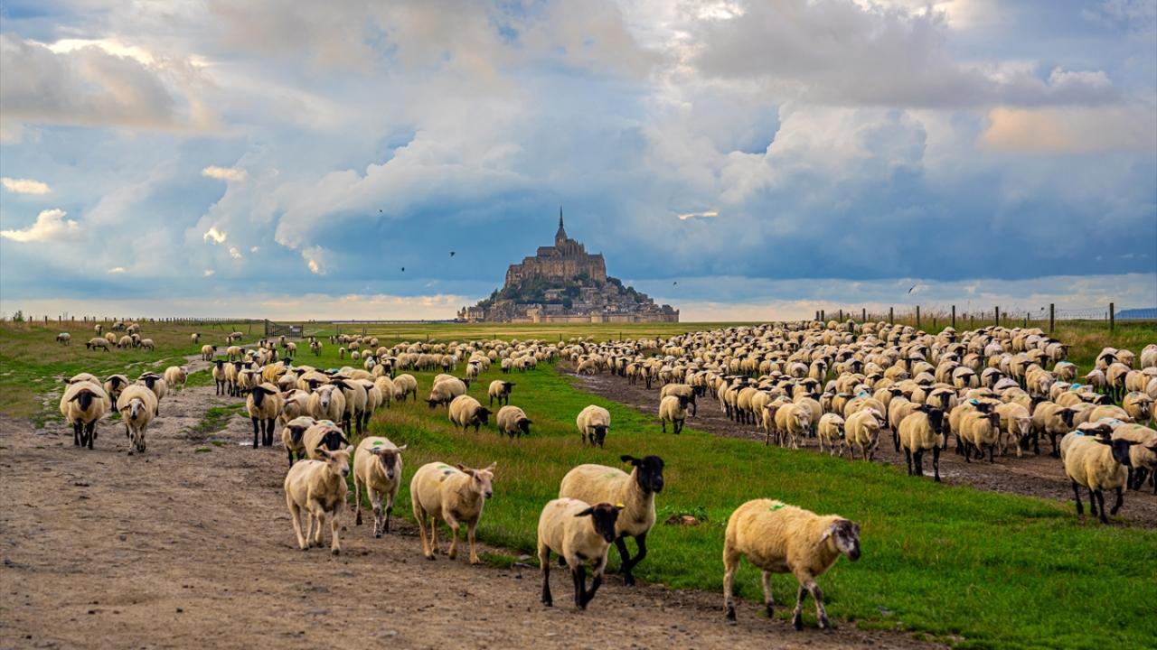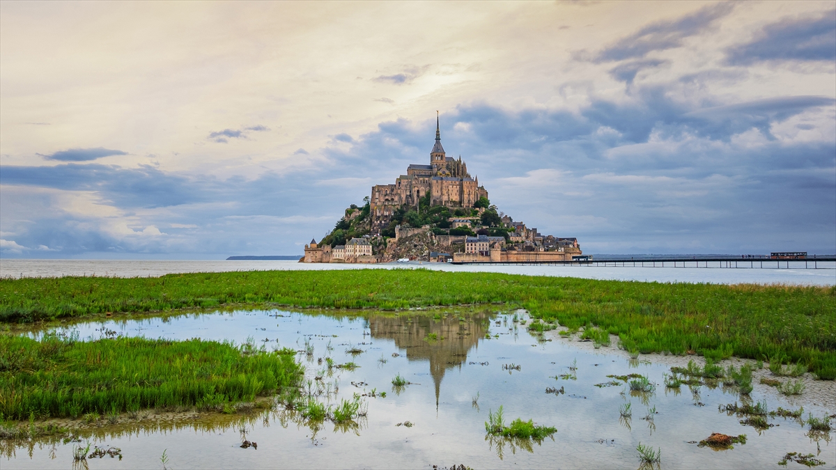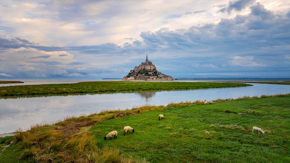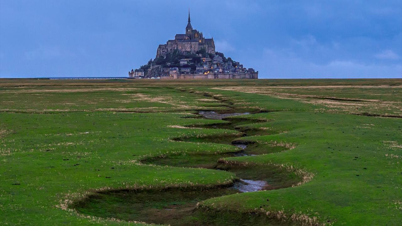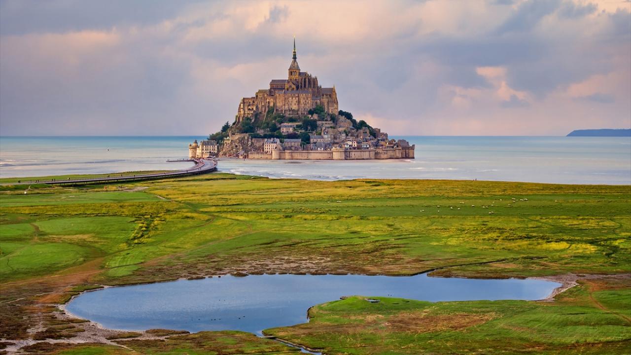 Mont Saint-Michel, metcezir (gelgit) nedeniyle denizin çok yükseldiği zamanlarda ada görünümünü alıyor.