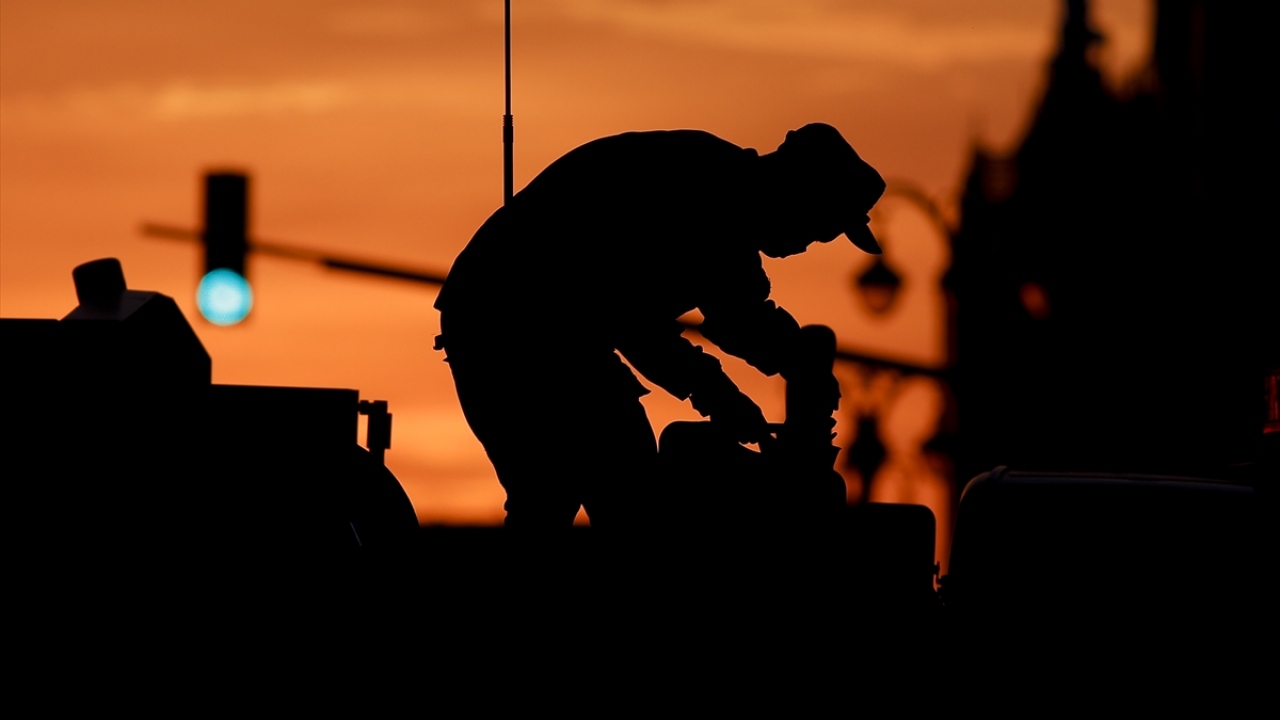 Vatandaşlar, geçit törenine katılan askeri araçları güvenlik koridorunda seyretti.