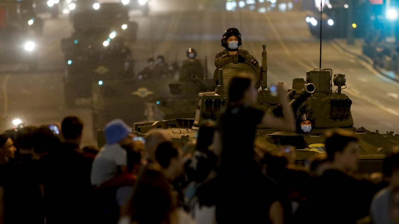 Yeni tip koronavirüs (Covid-19) salgını nedeniyle ertelenen Sovyetler Birliği'nin, İkinci Dünya Savaşı'nda Nazi Almanyası'nı mağlup edişinin 75. yılı kutlamaları hazırlıkları Rusya’da devam etti.
