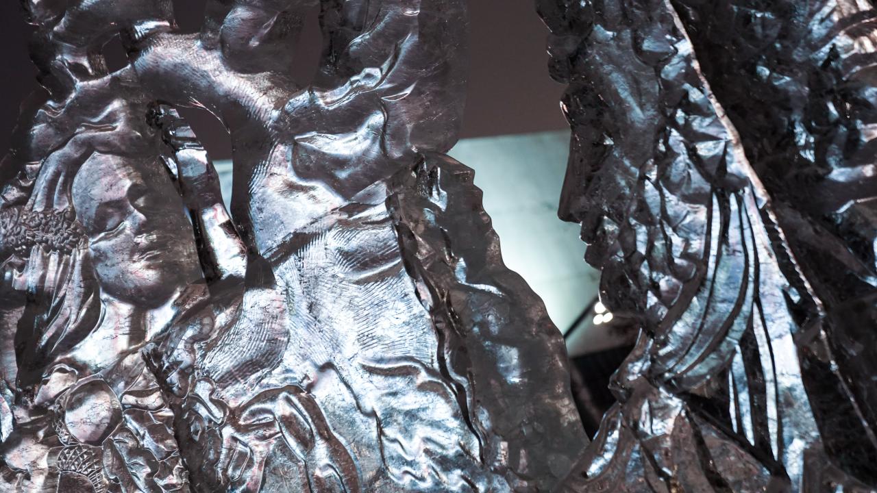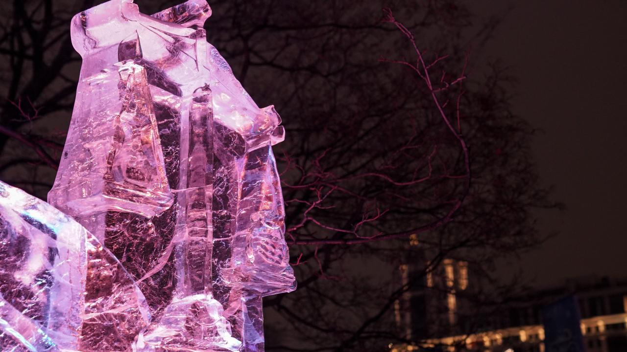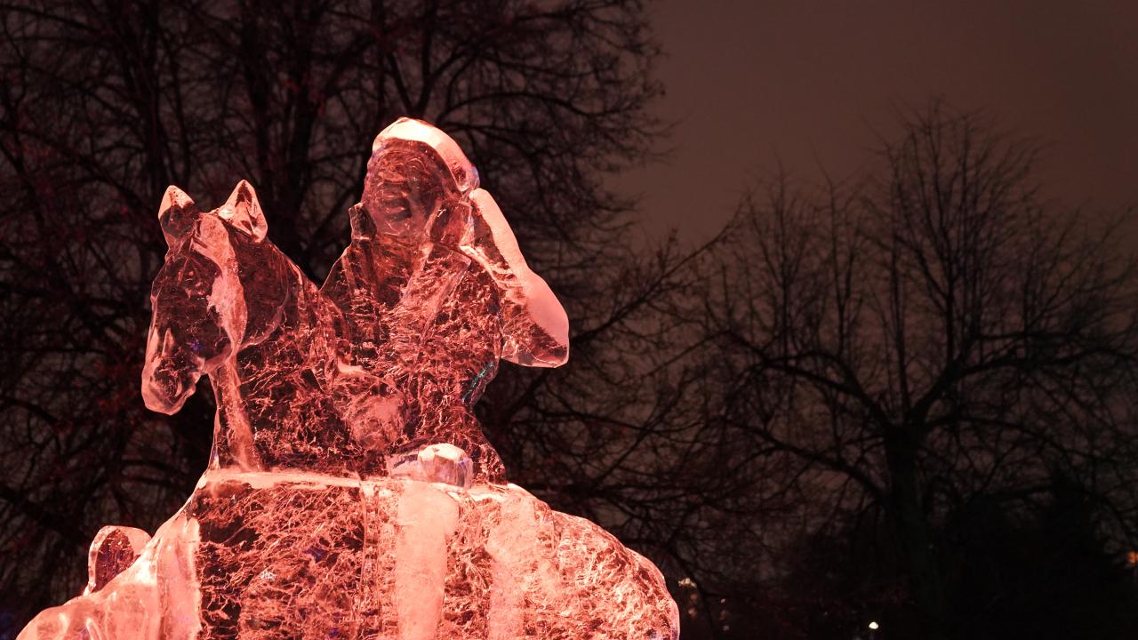 Işıklarla renklendirilen buzdan heykeller, ziyaretçileri hayran bıraktı.