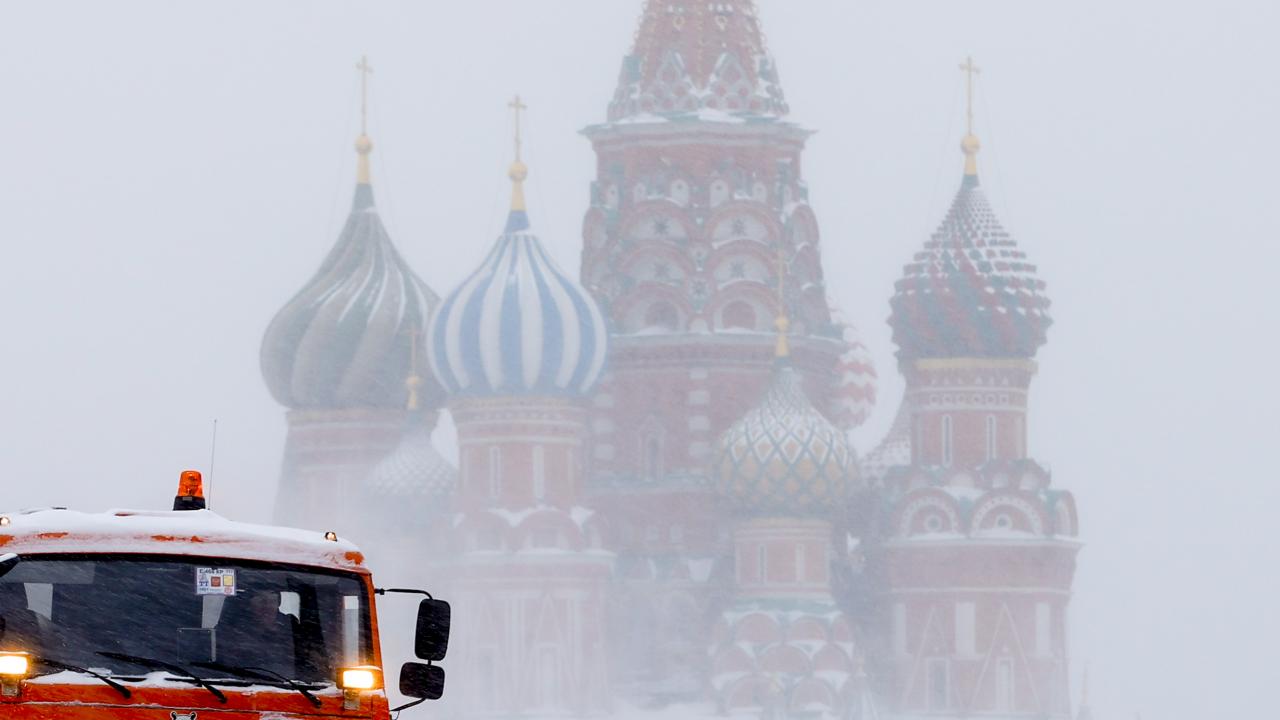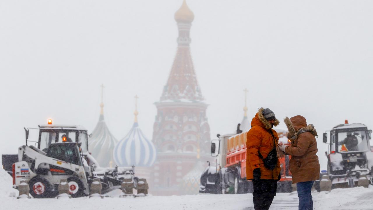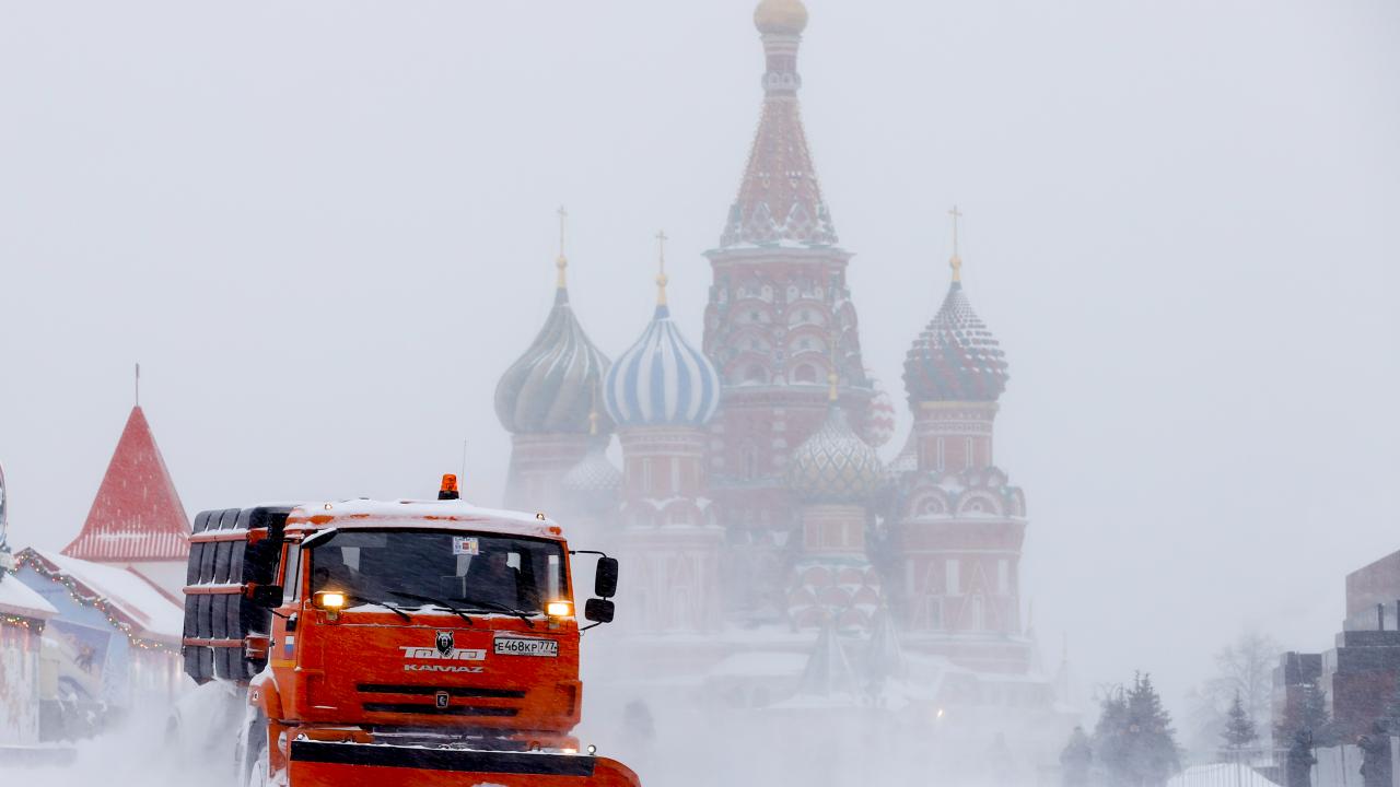 Rusya'nın başkenti Moskova'daki tarihi Kızıl Meydan'da belediye ekipleri kar temizleme çalışması yaptı.