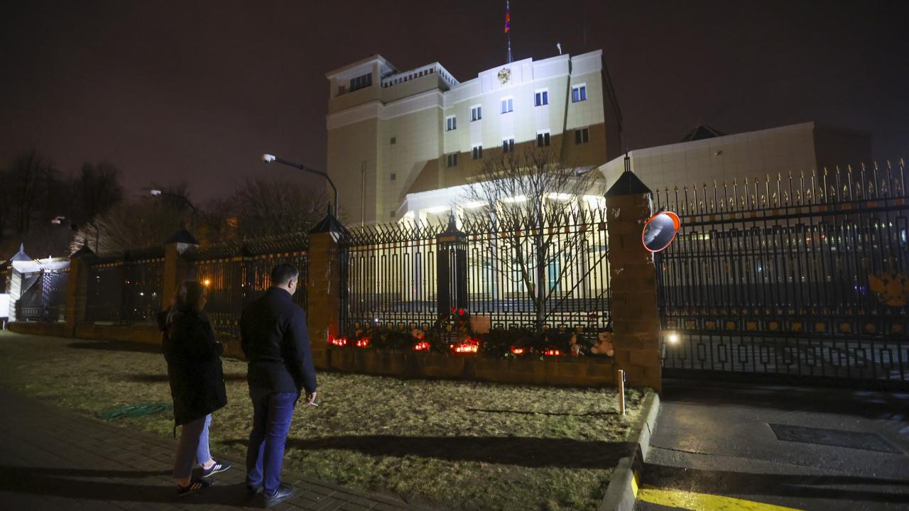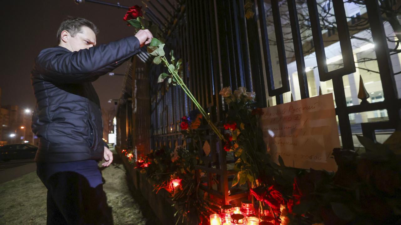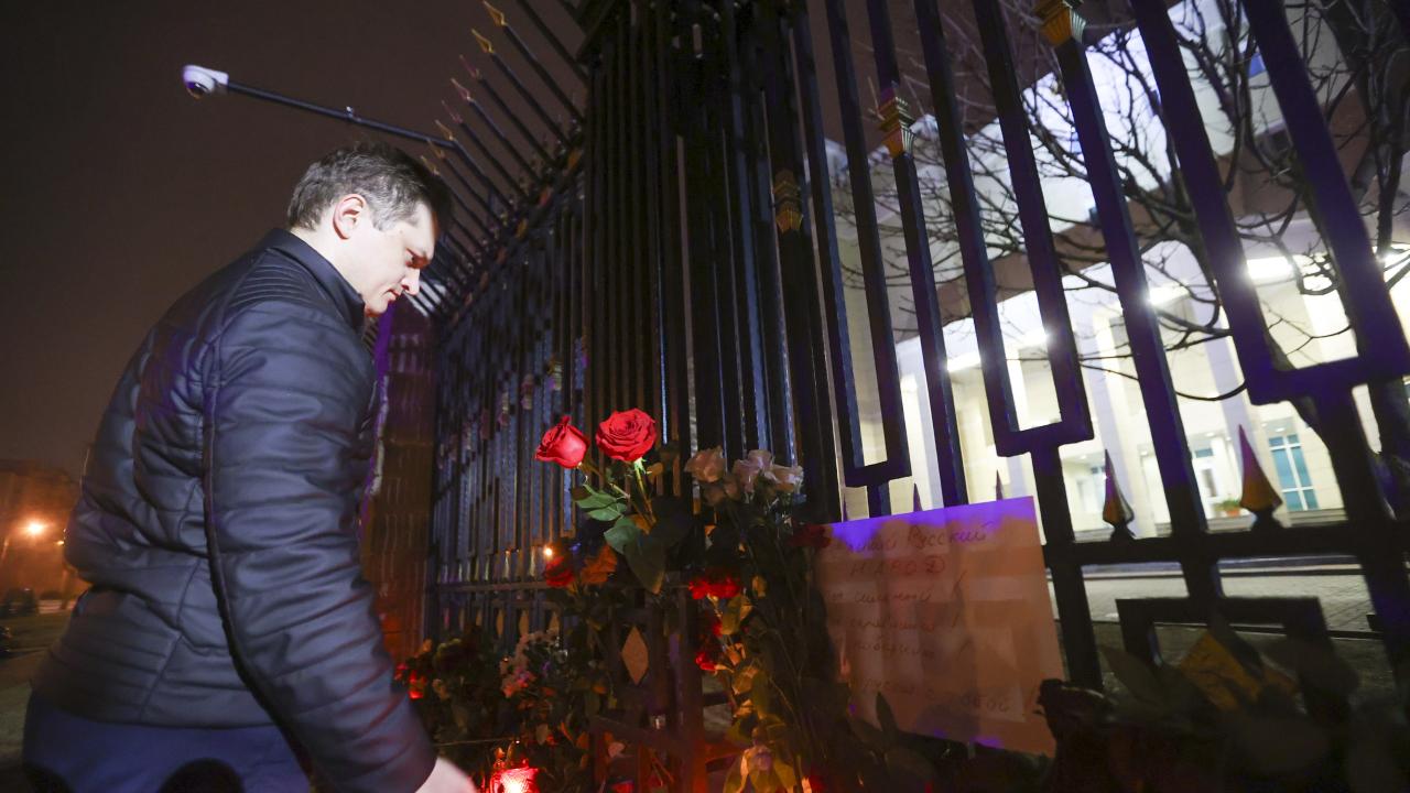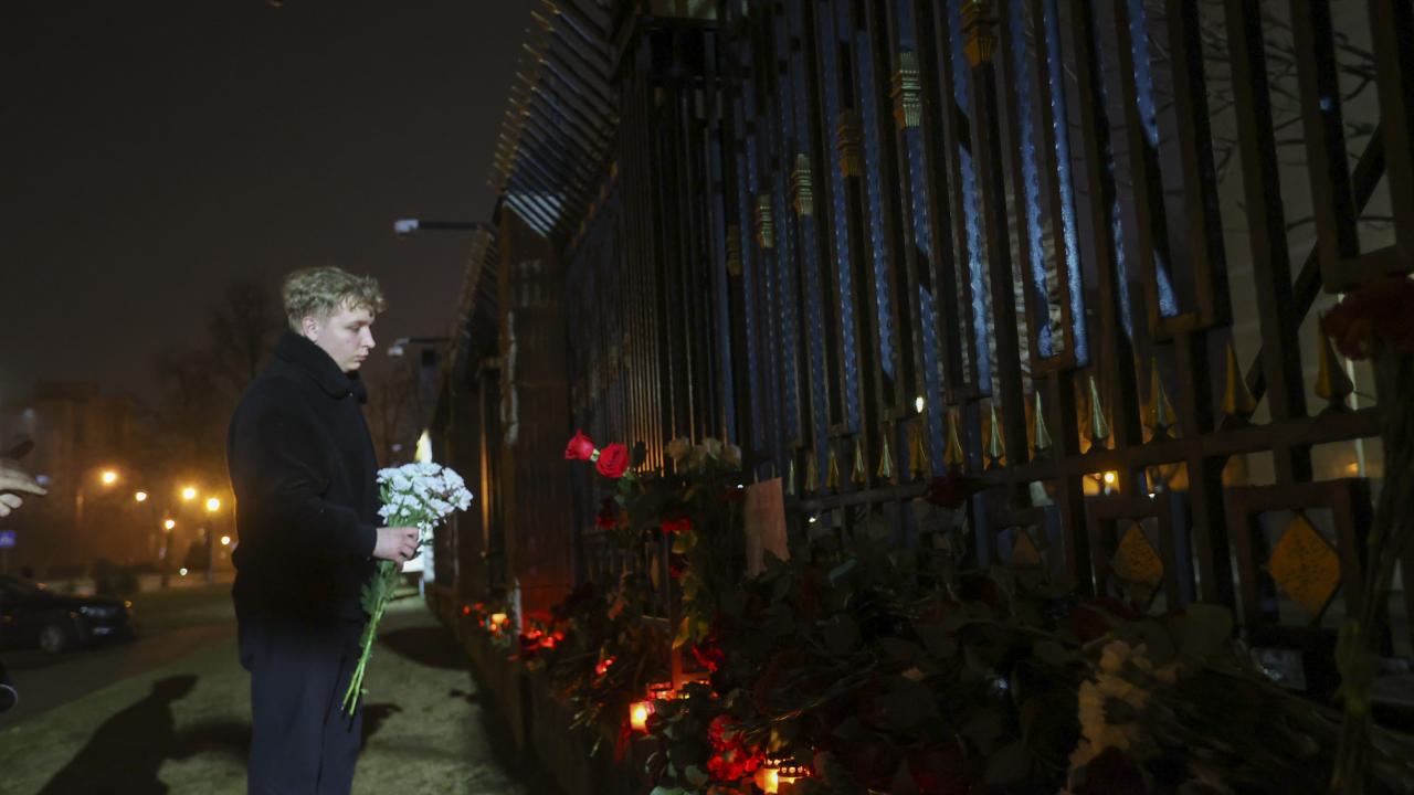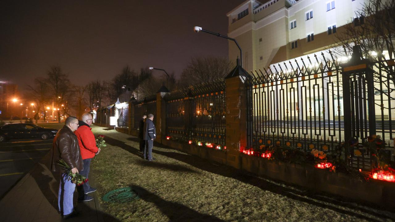 Rusya’nın başkenti Moskova’da Crocus City Hall adlı konser salonuna silahlı kişilerce düzenlenen saldırının ardından hayatını kaybedenlerin yasını tutmak amacıyla Rusya'nın Minsk Büyükelçiliği binasının önüne çiçek bırakılarak mum yakıldı.