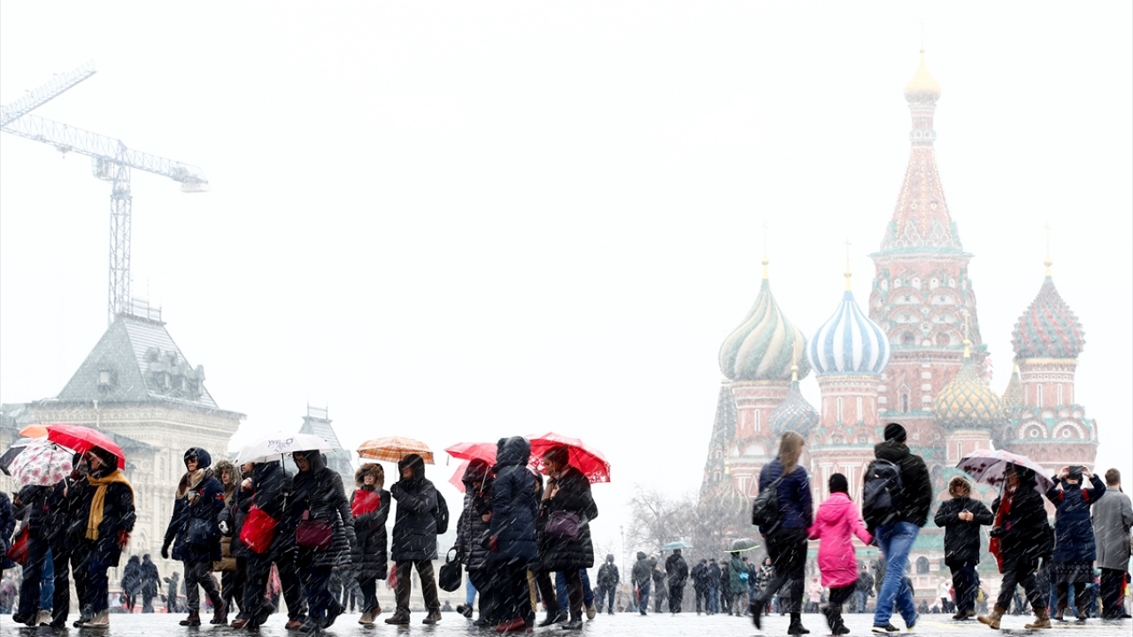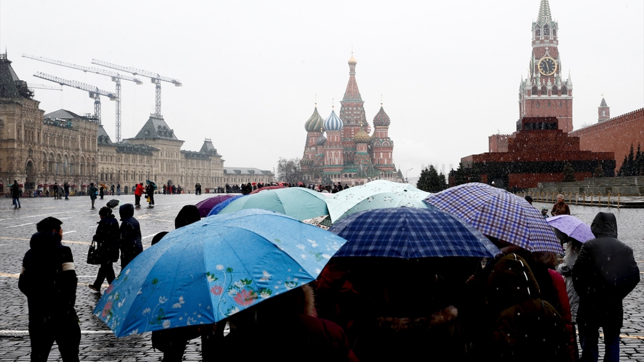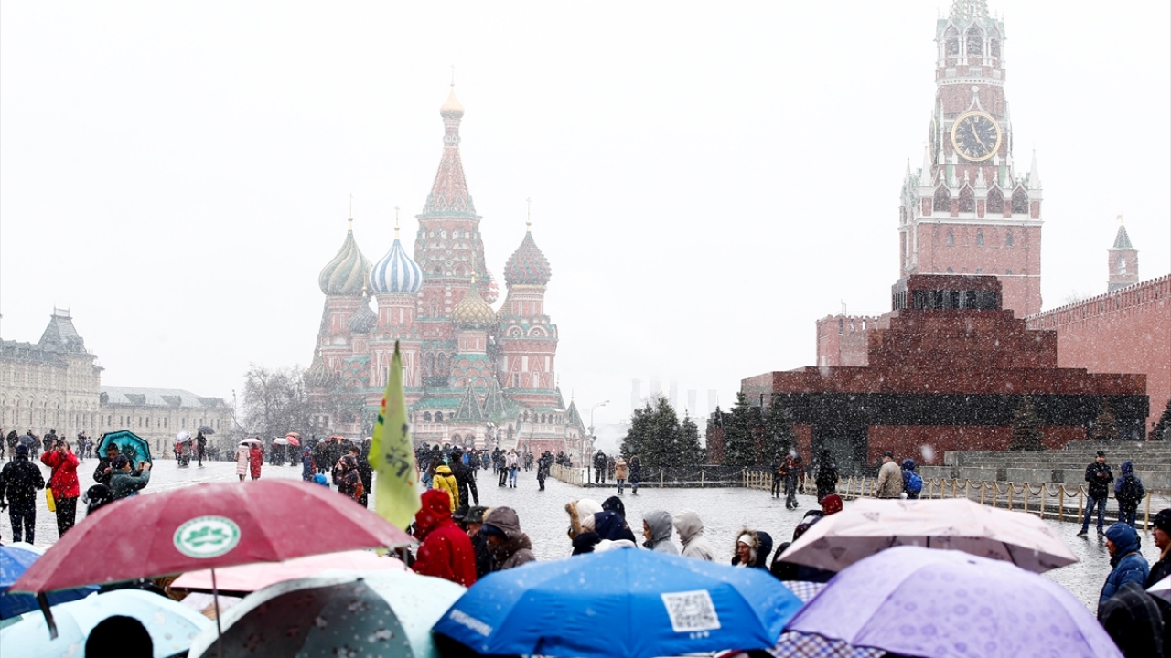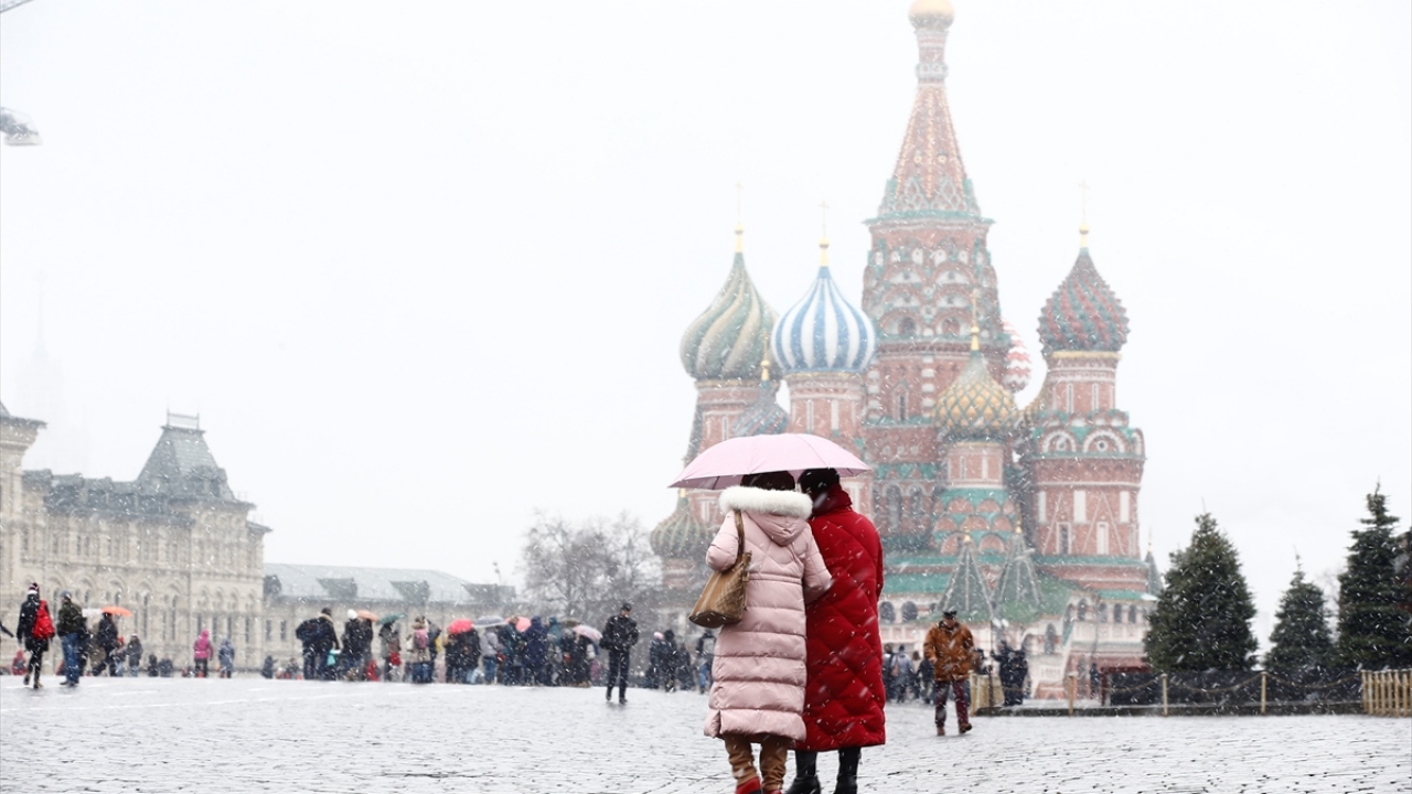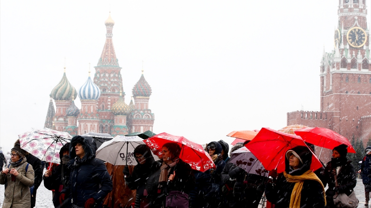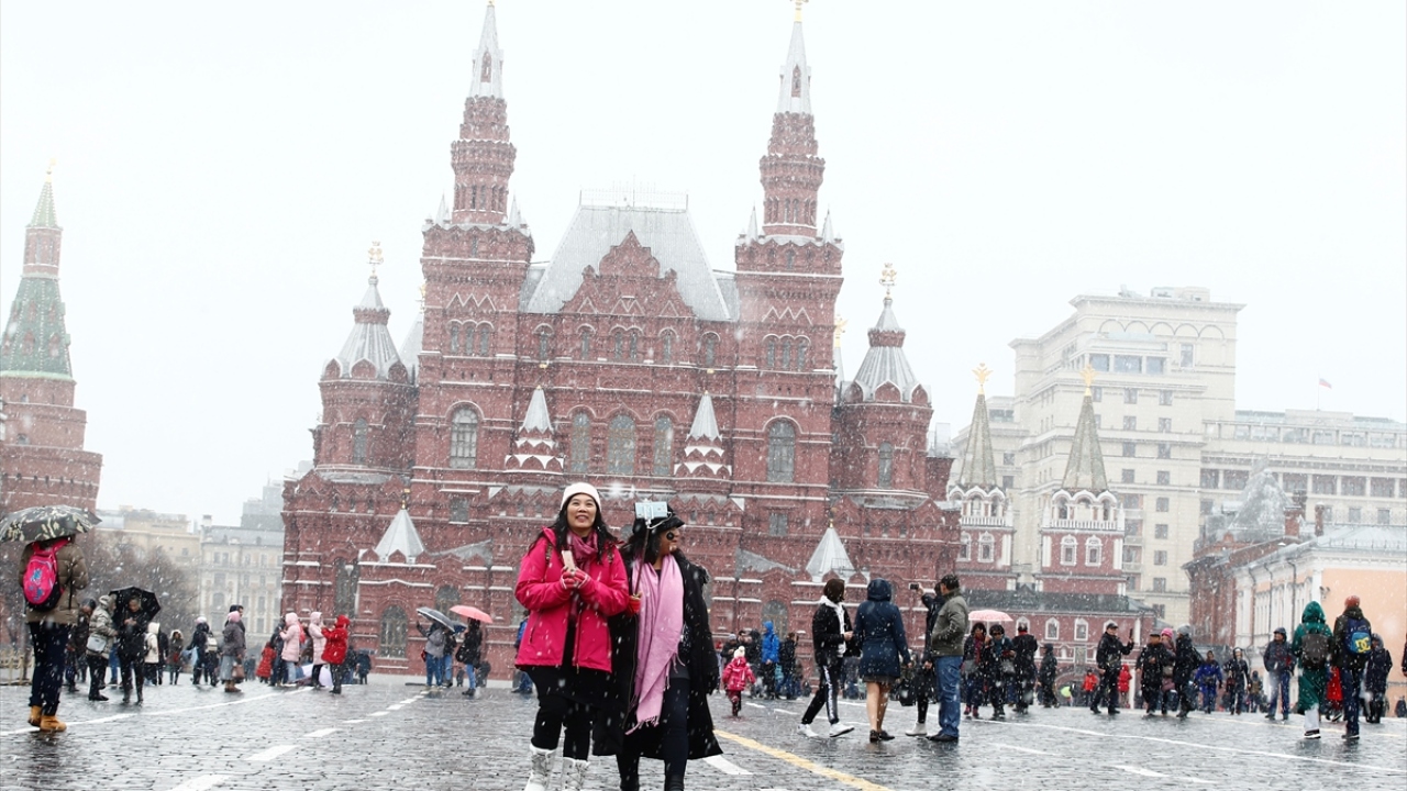 Rusya`nın başkenti Moskova`da mart ayında kar yağışı etkili oldu. Tarihi kızıl meydana gelen yerli ve yabancı turistler kar yağışı sırasında yürüyüş yaptı, fotoğraf çektirdi.