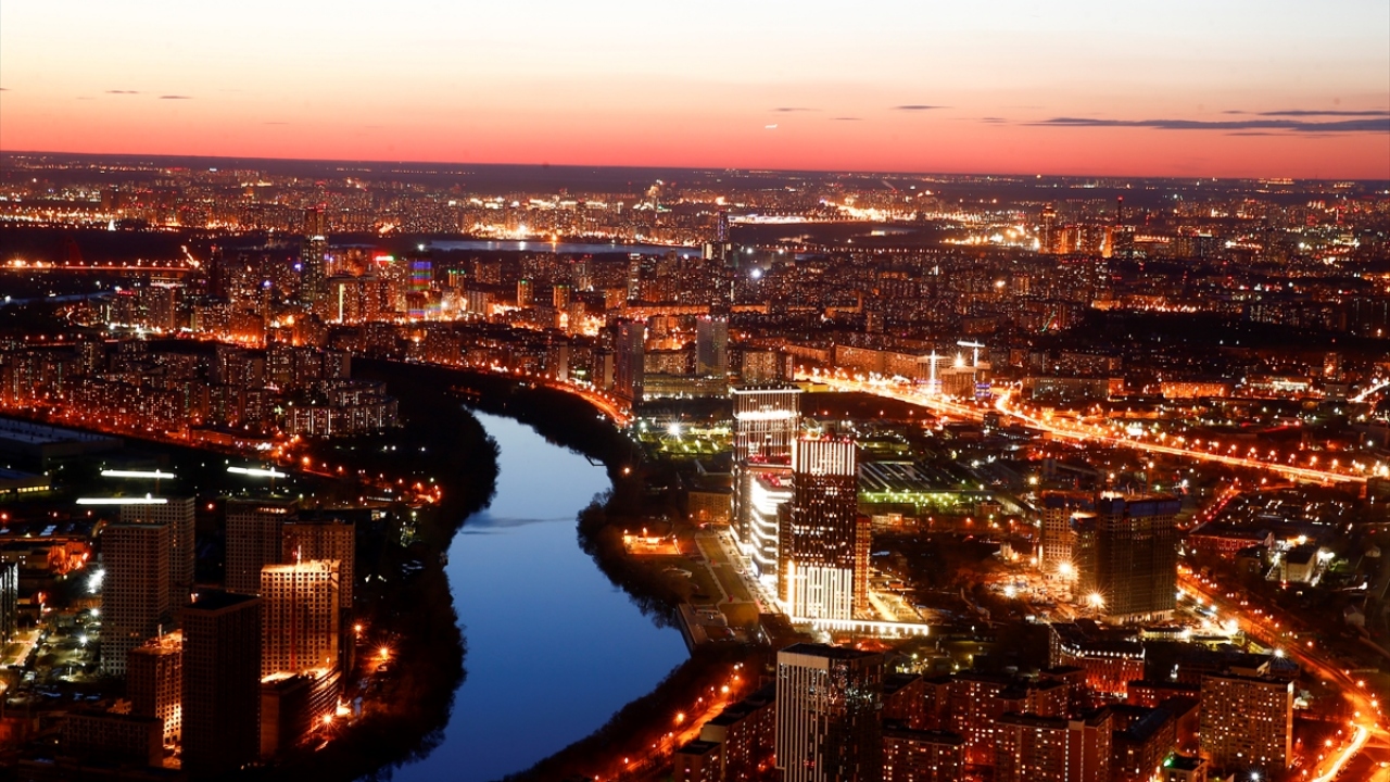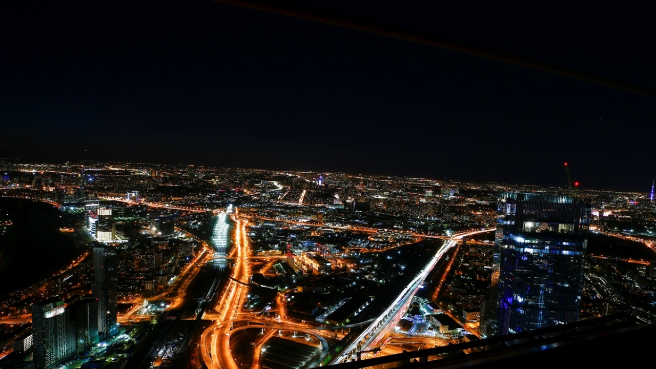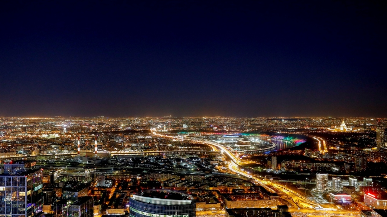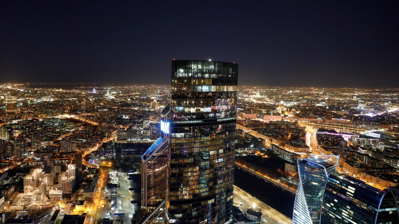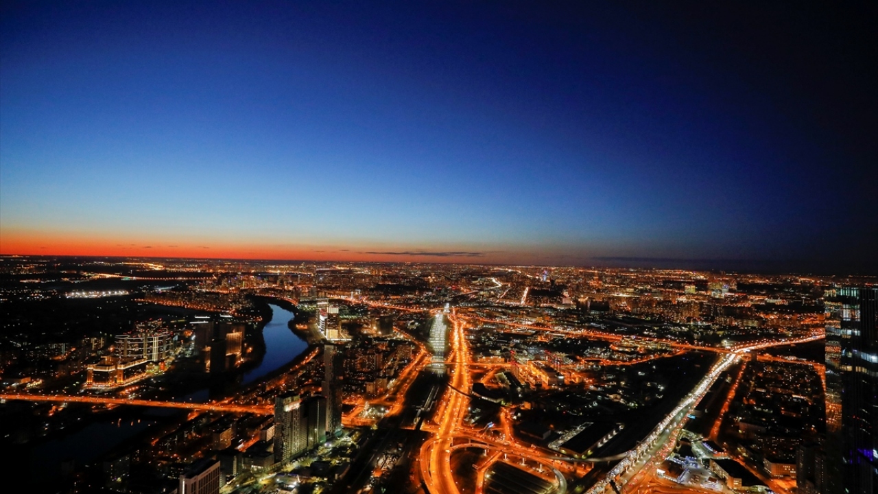 Rusya'nın başkenti Moskova'daki Moskova City İş Merkezi'nin 85. katından gözlenen manzara ve şehir ışıkları güzel görüntüler oluşturdu.