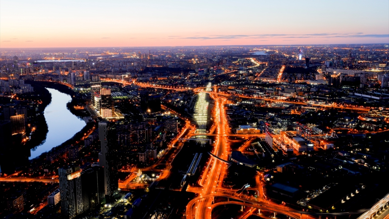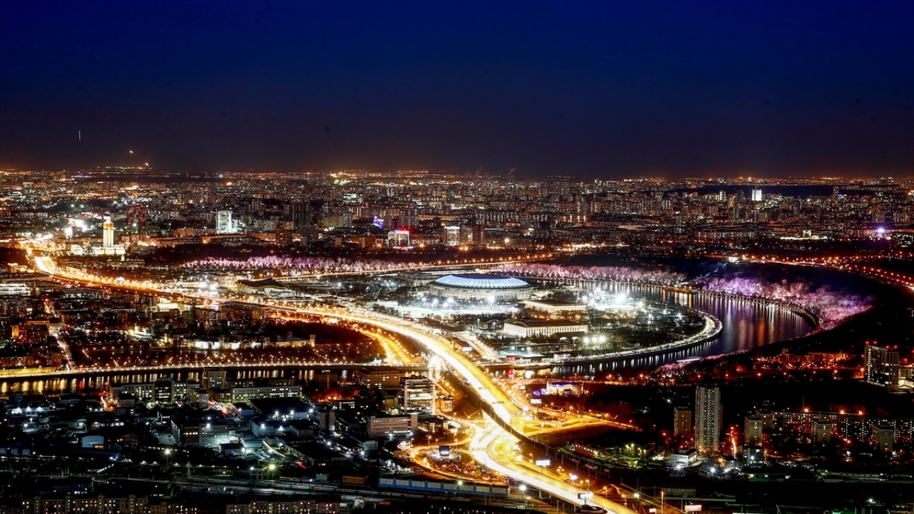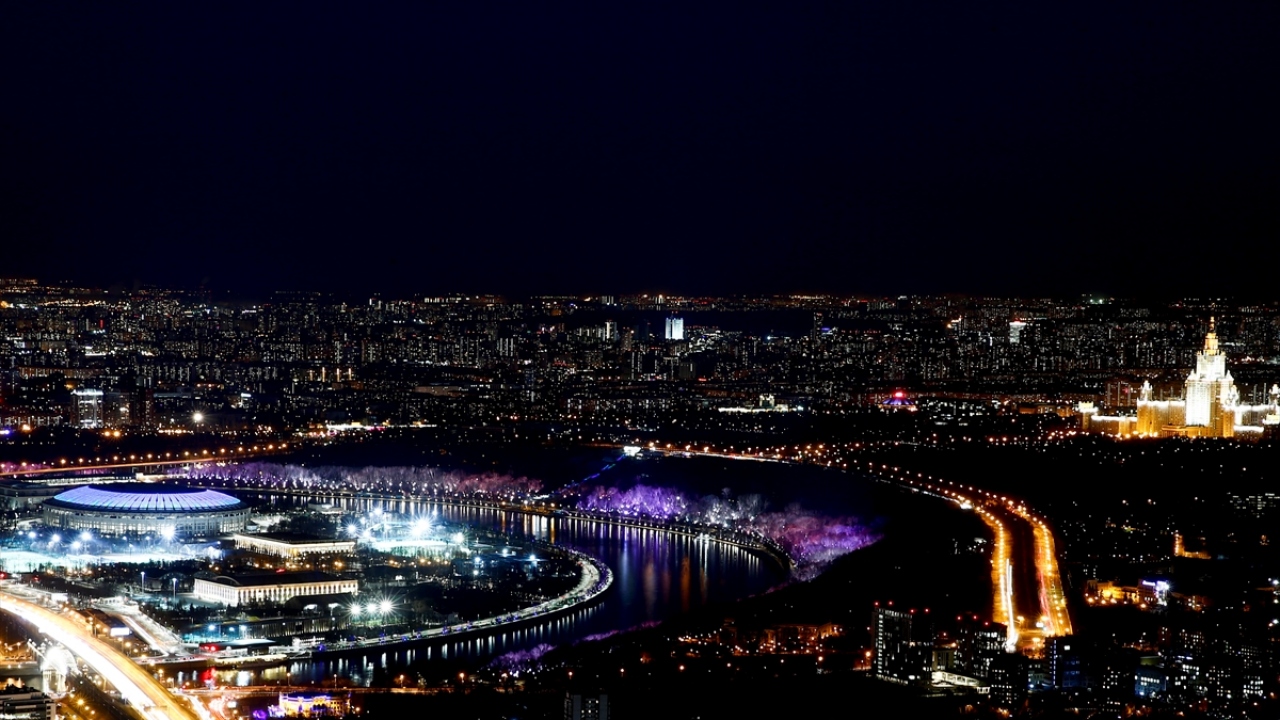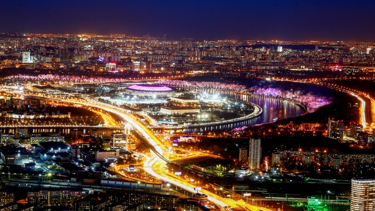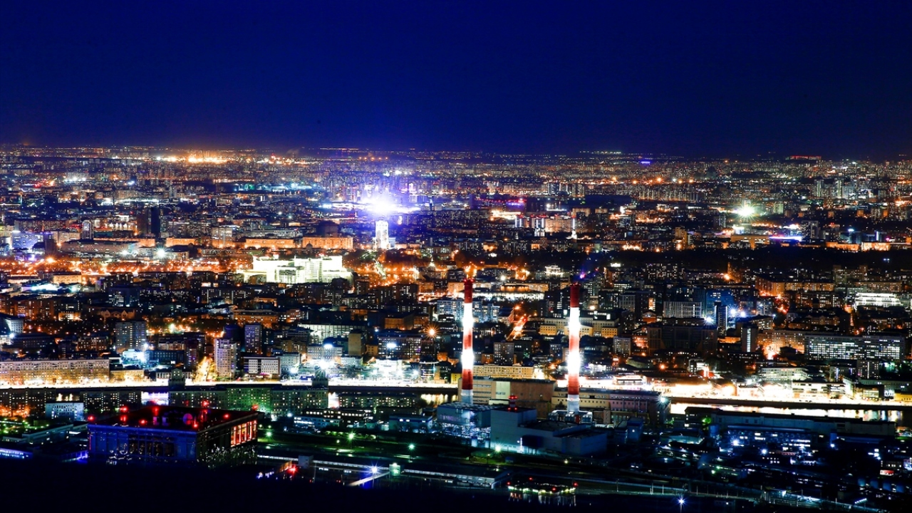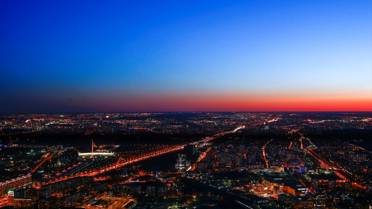 Rusya'nın başkenti Moskova'daki Moskova City İş Merkezi'nin 85. katından gözlenen manzara ve şehir ışıkları güzel görüntüler oluşturdu.