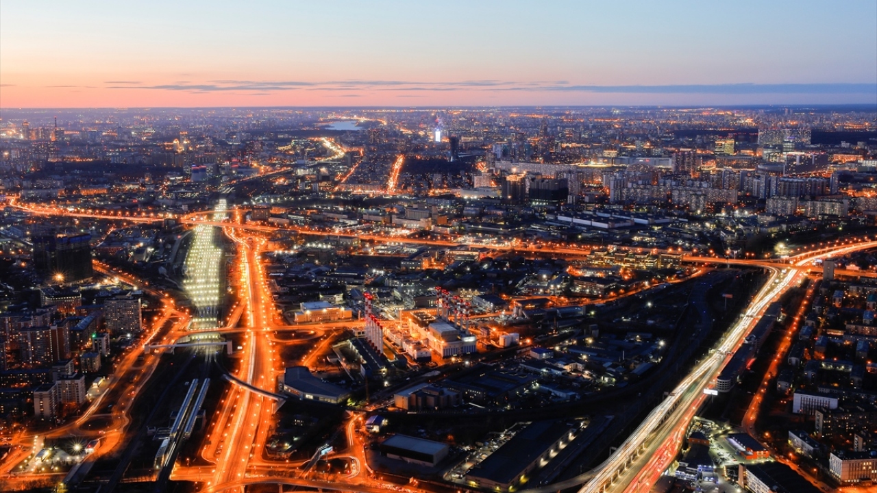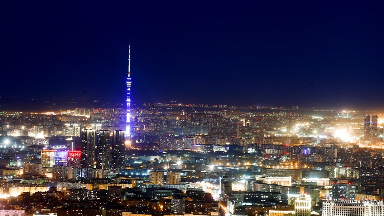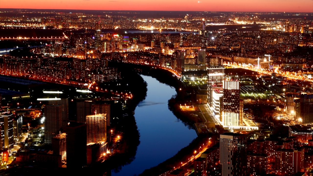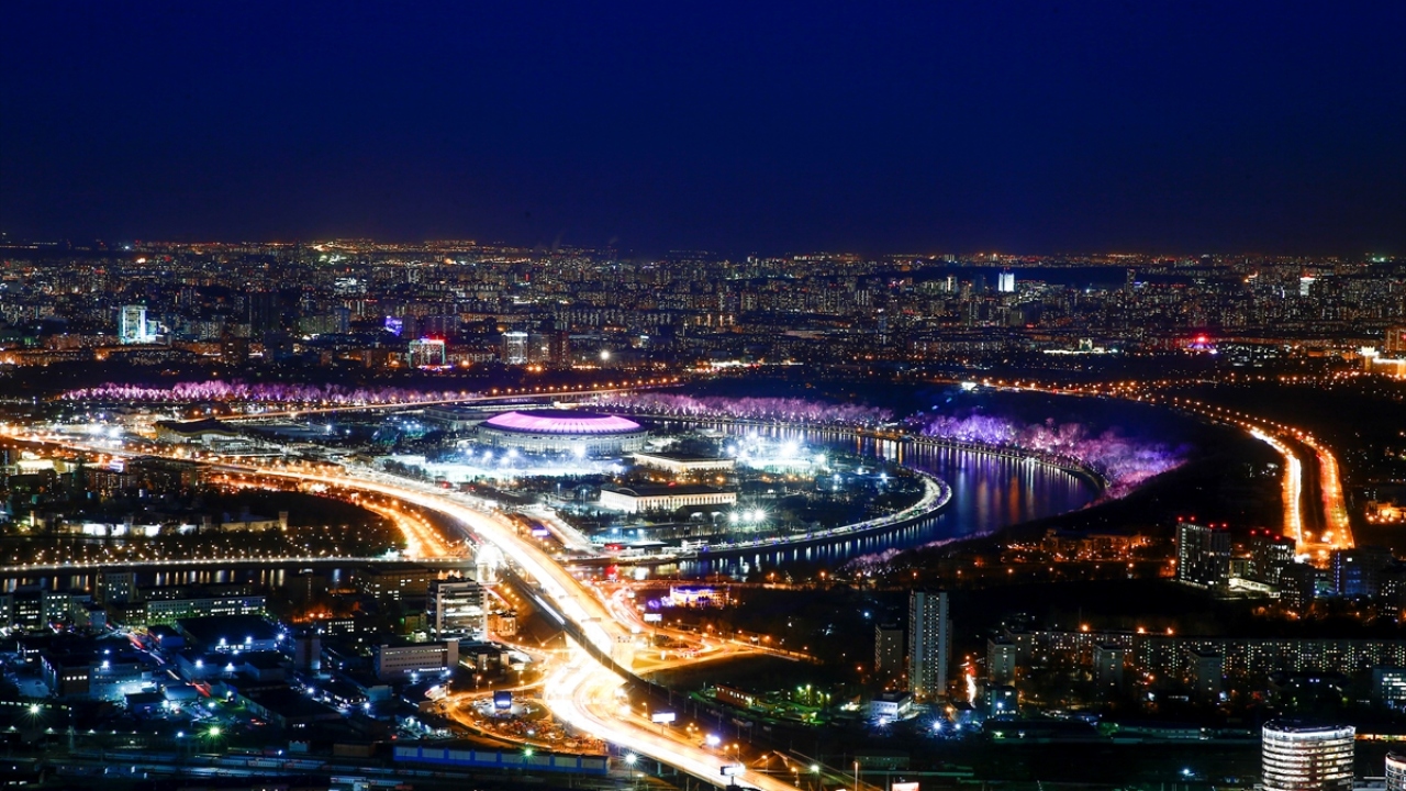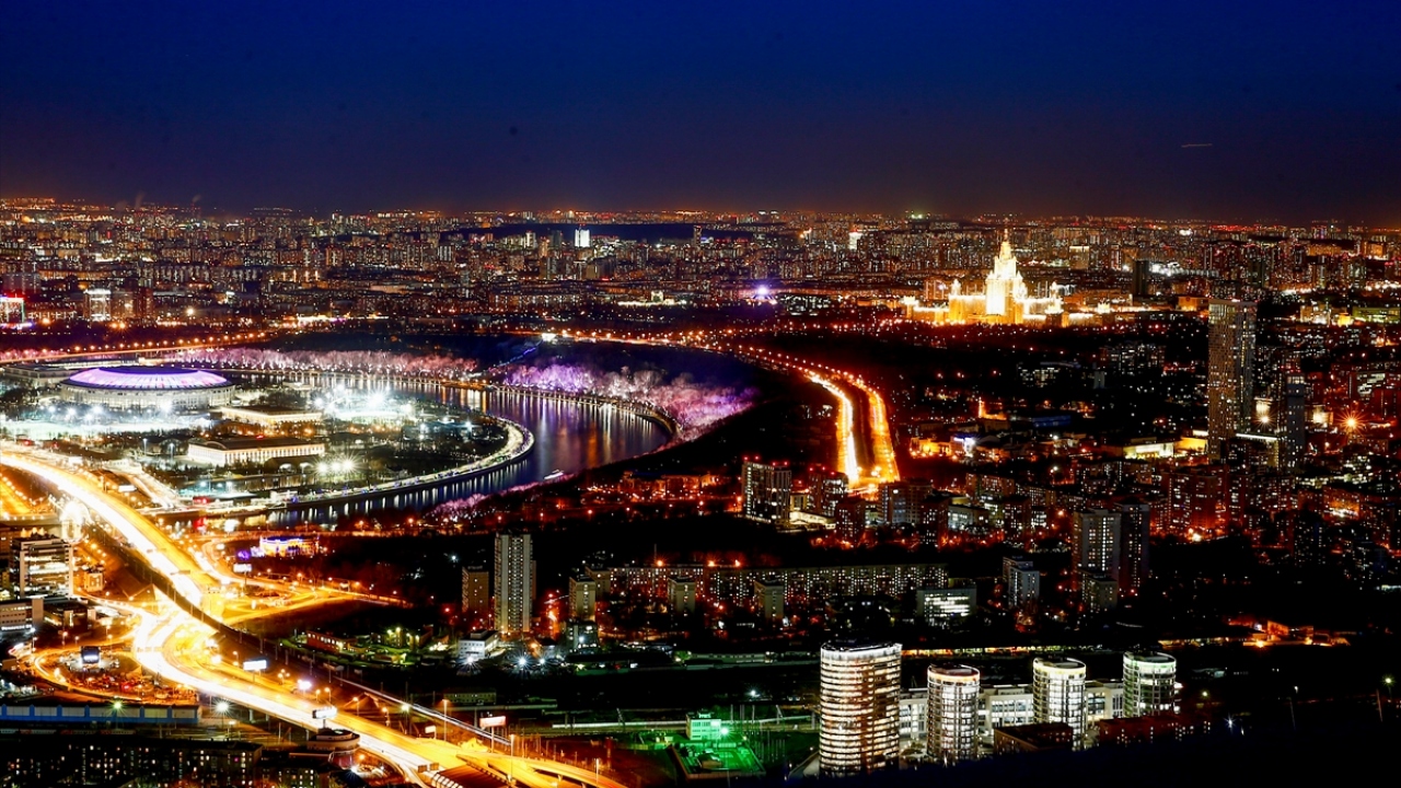 Rusya'nın başkenti Moskova'daki Moskova City İş Merkezi'nin 85. katından gözlenen manzara ve şehir ışıkları güzel görüntüler oluşturdu.