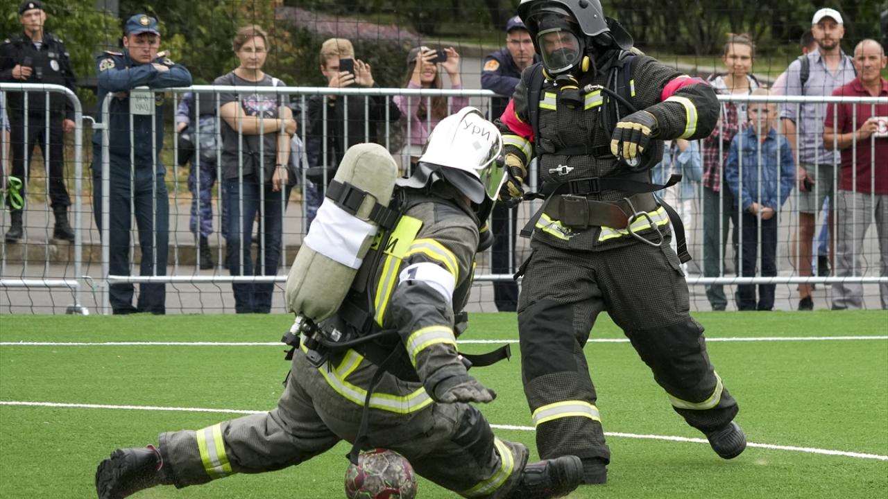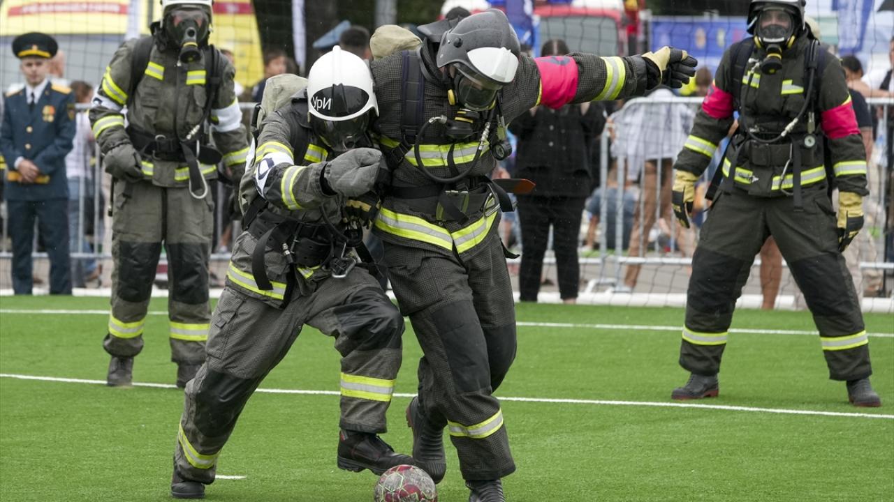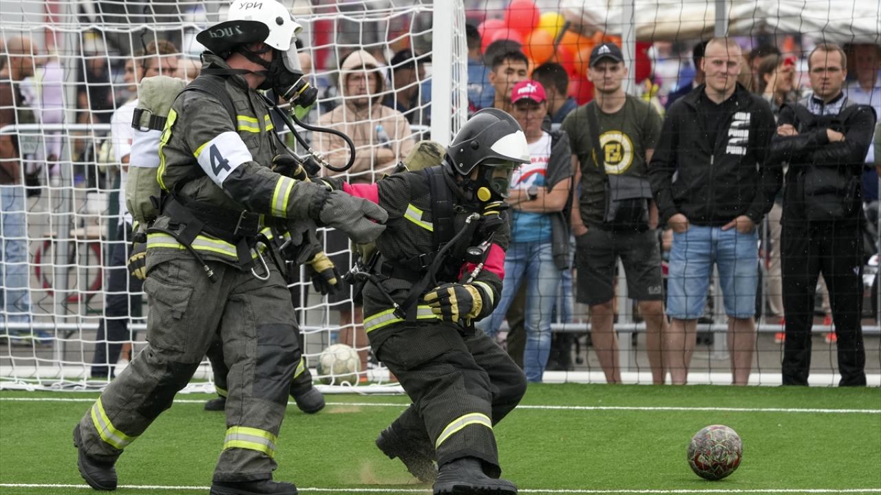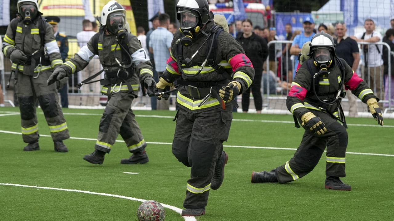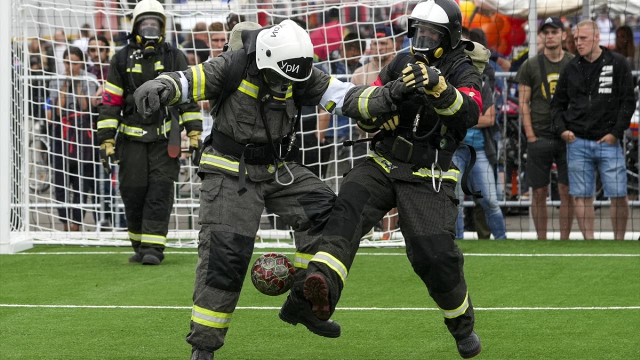 Rusyanın başkenti Moskova'da 3. Uluslararası İtfaiye ve Kurtarma Kongresi'nin kapsamında, Gorki Parkı'nda düzenlenen yangın futbolu yarışmasına çok sayıda itfaiyeci katıldı.