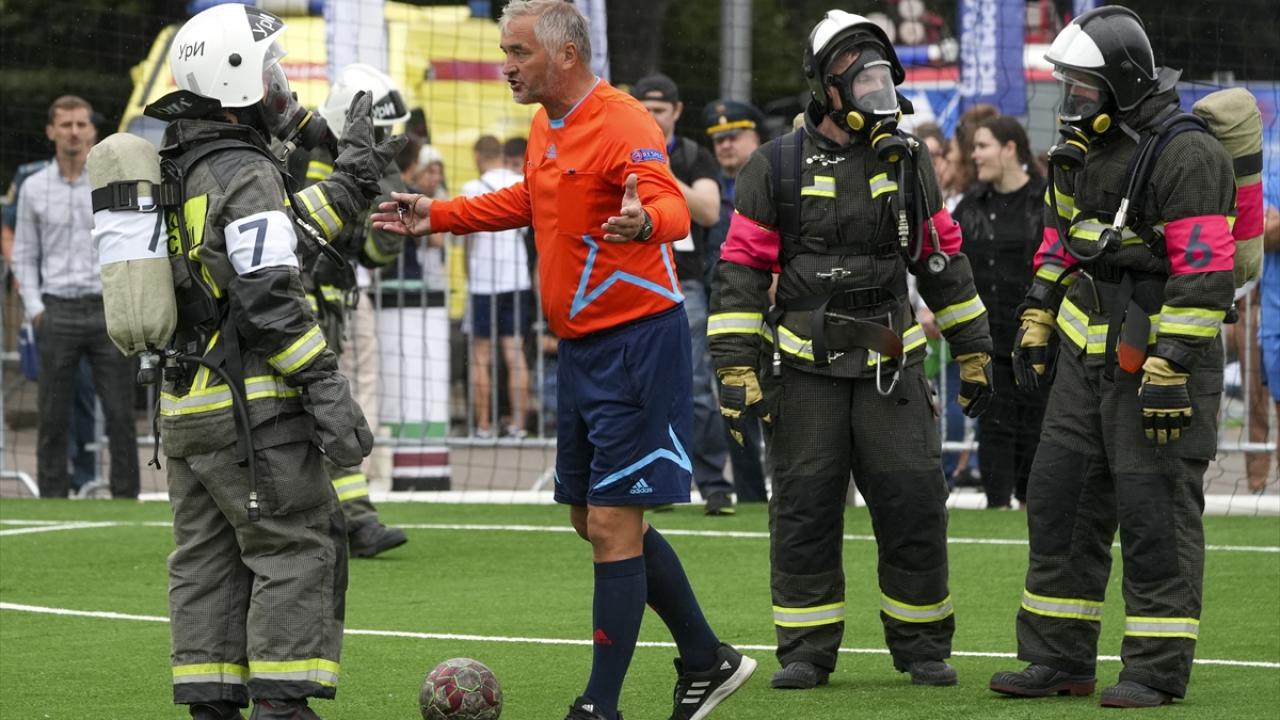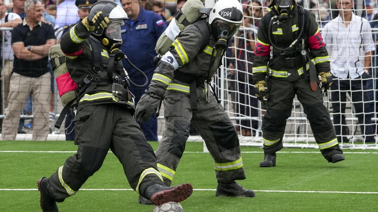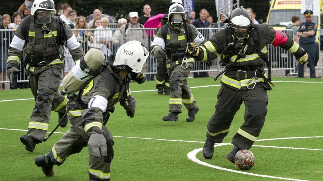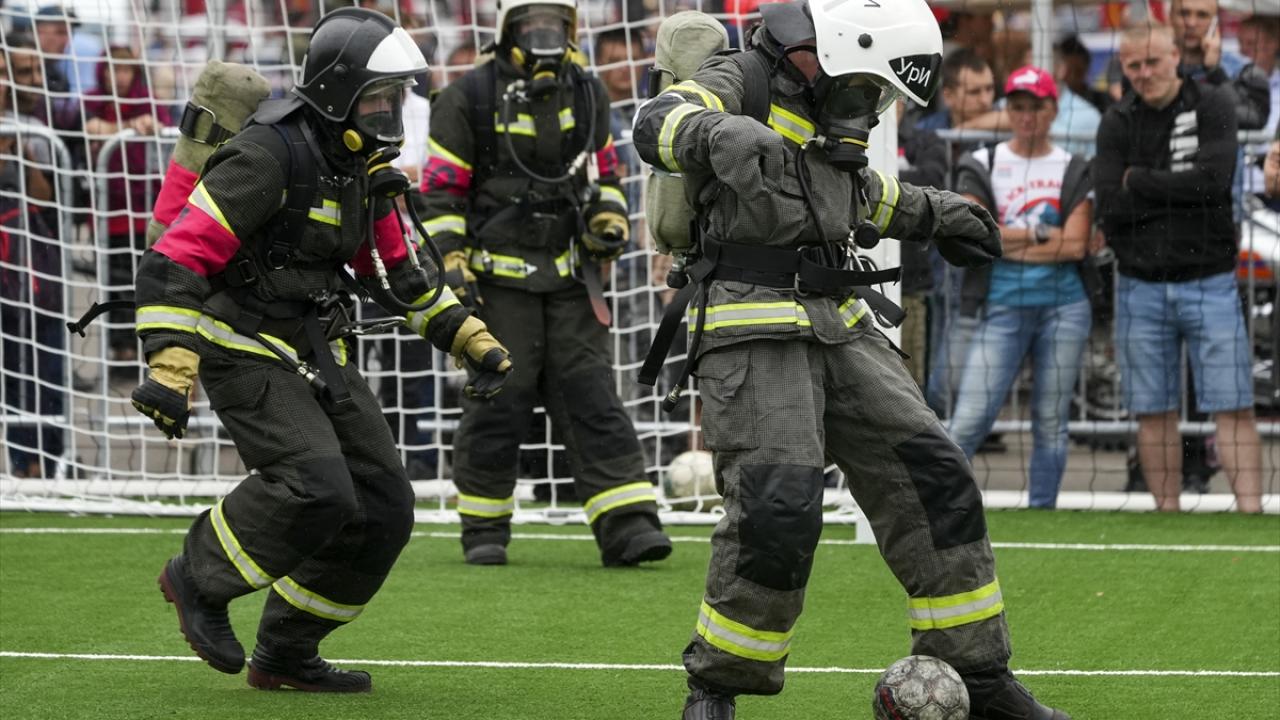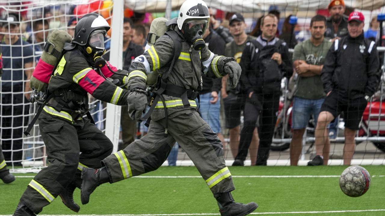 Rusyanın başkenti Moskova'da 3. Uluslararası İtfaiye ve Kurtarma Kongresi'nin kapsamında, Gorki Parkı'nda düzenlenen yangın futbolu yarışmasına çok sayıda itfaiyeci katıldı.