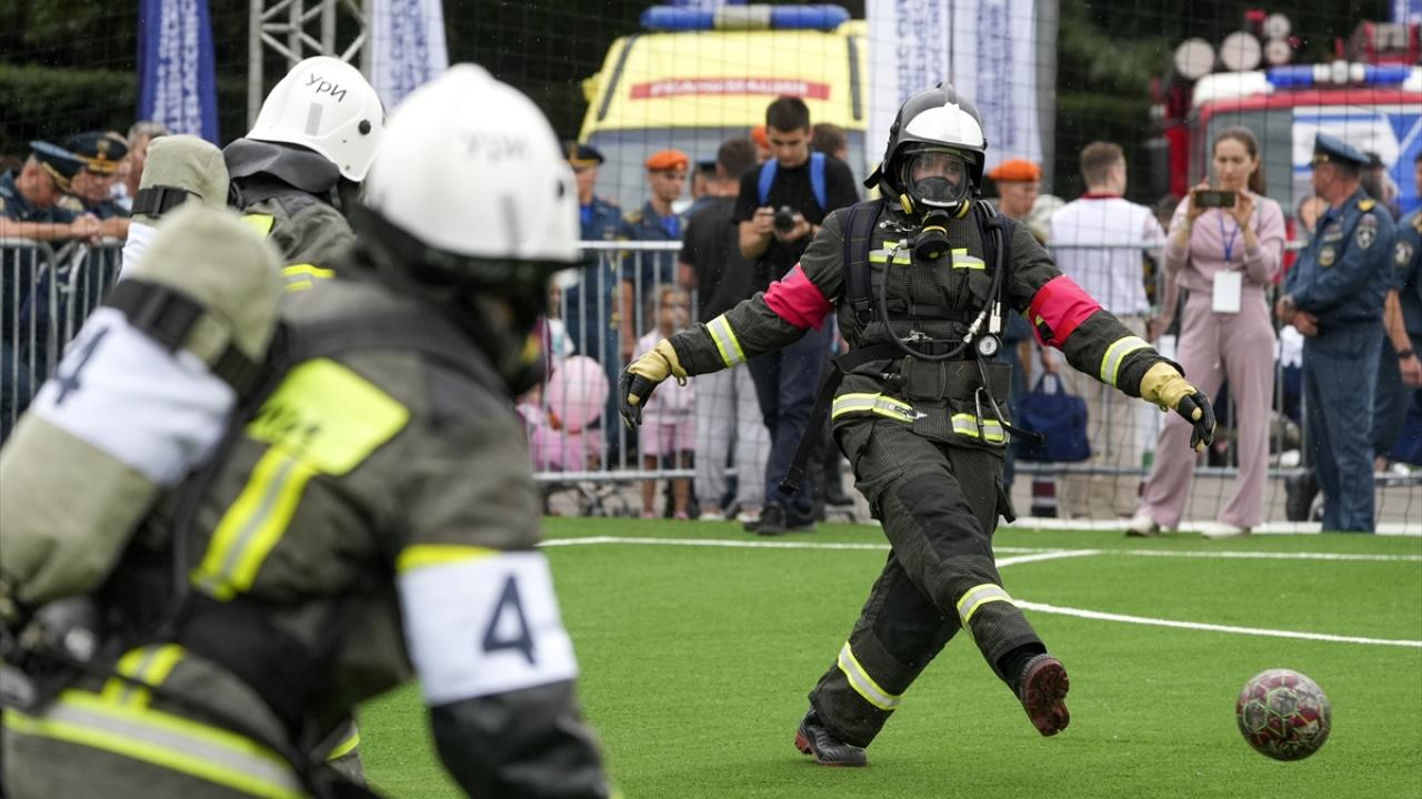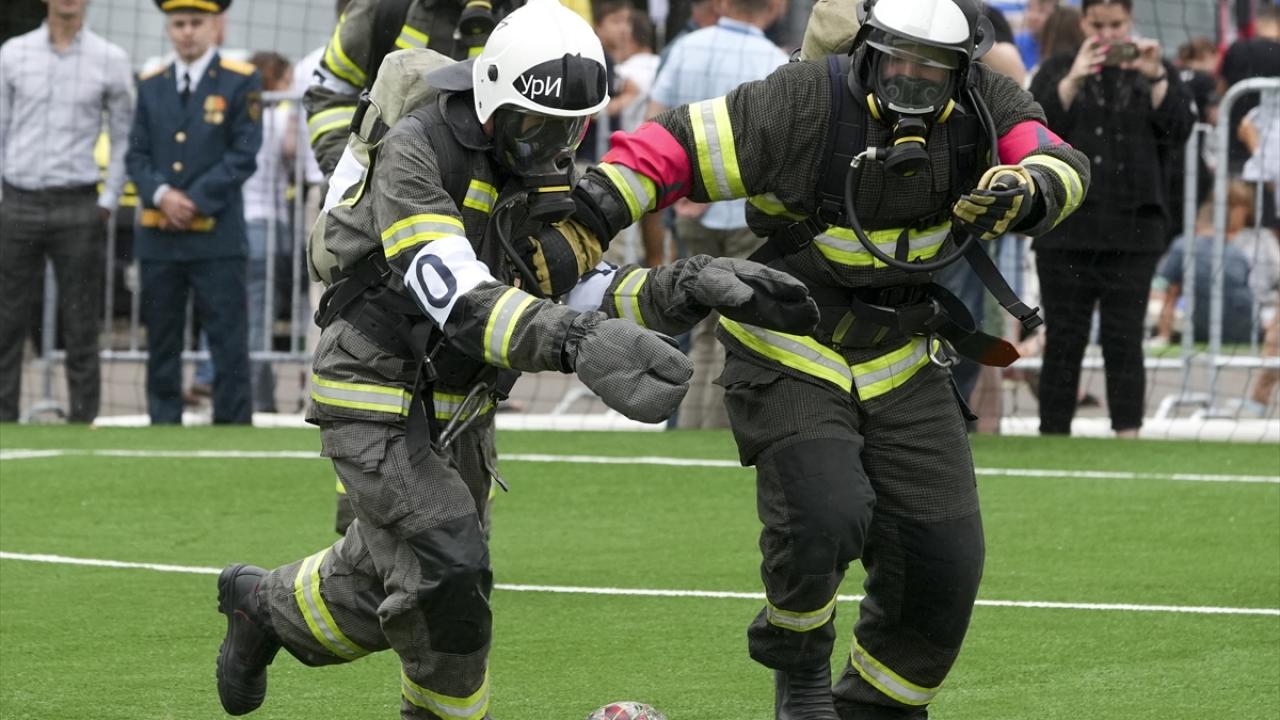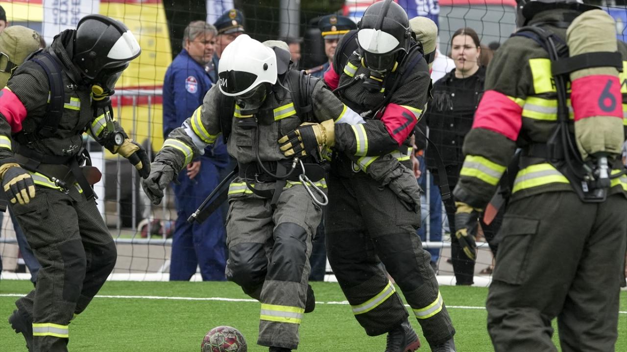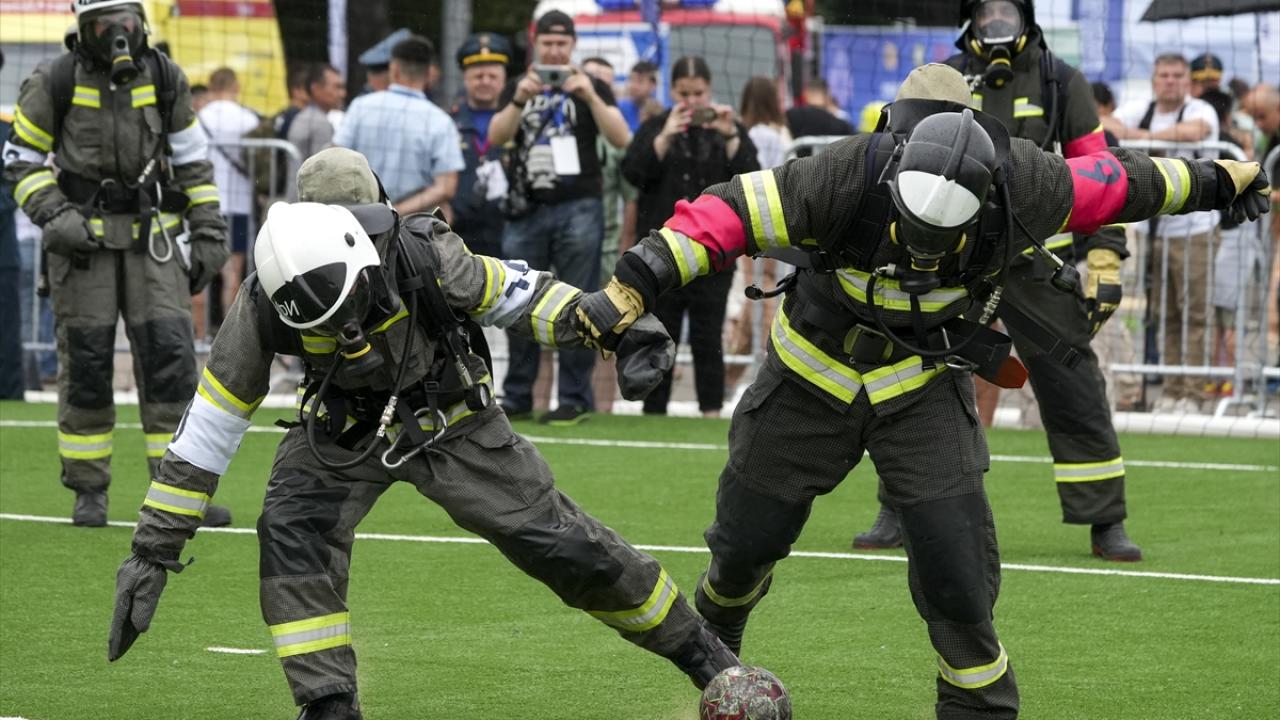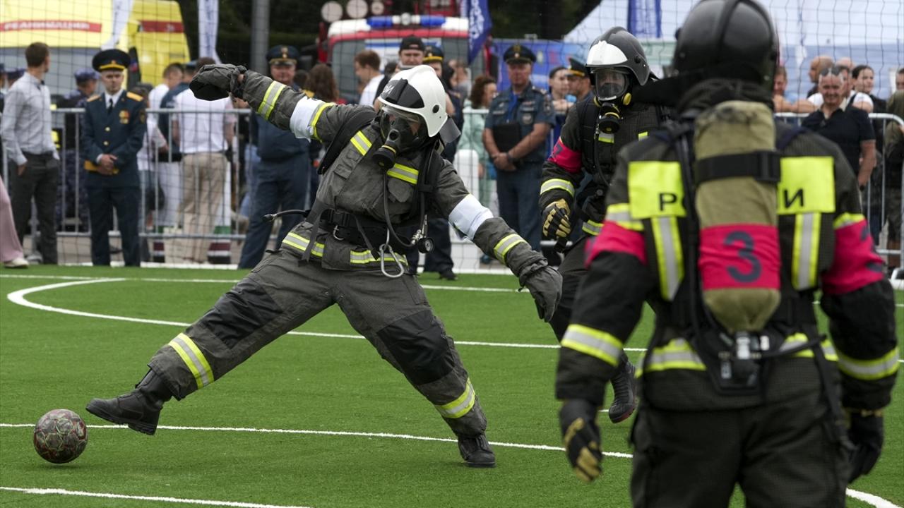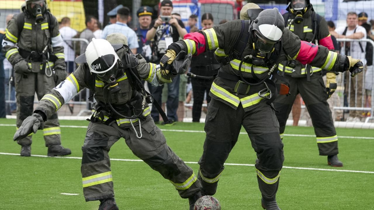 Rusyanın başkenti Moskova'da 3. Uluslararası İtfaiye ve Kurtarma Kongresi'nin kapsamında, Gorki Parkı'nda düzenlenen yangın futbolu yarışmasına çok sayıda itfaiyeci katıldı.
