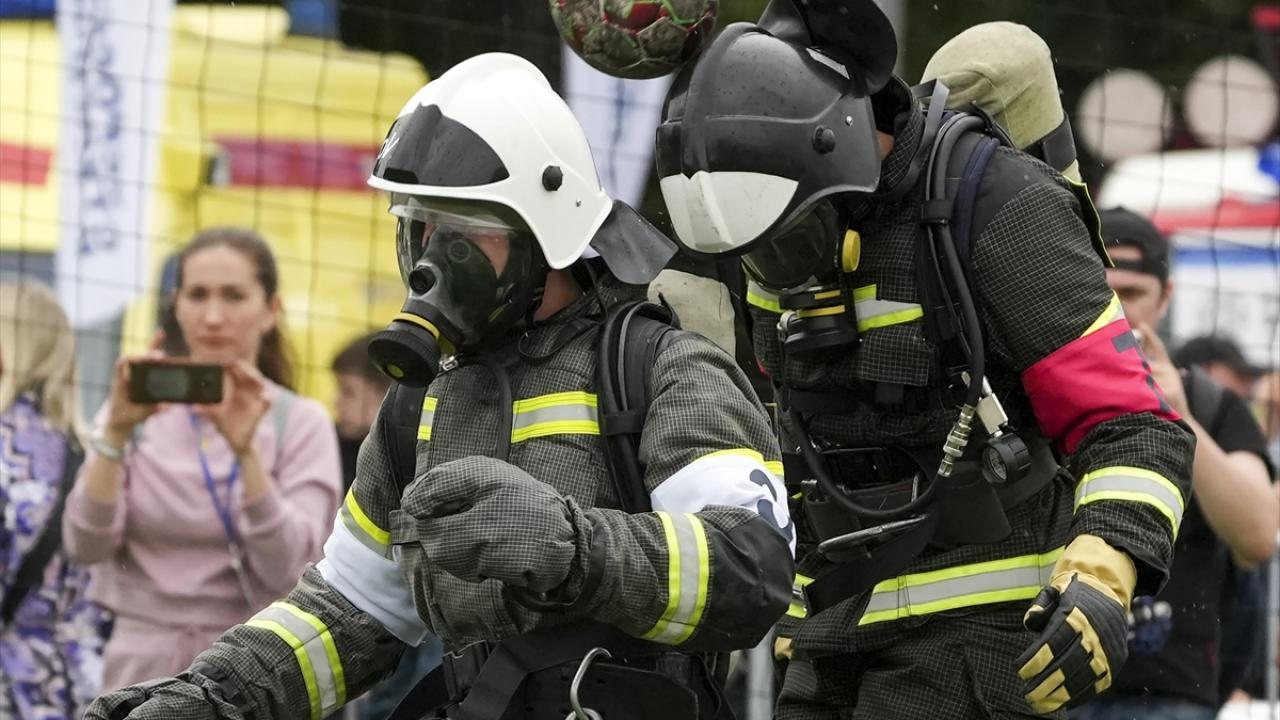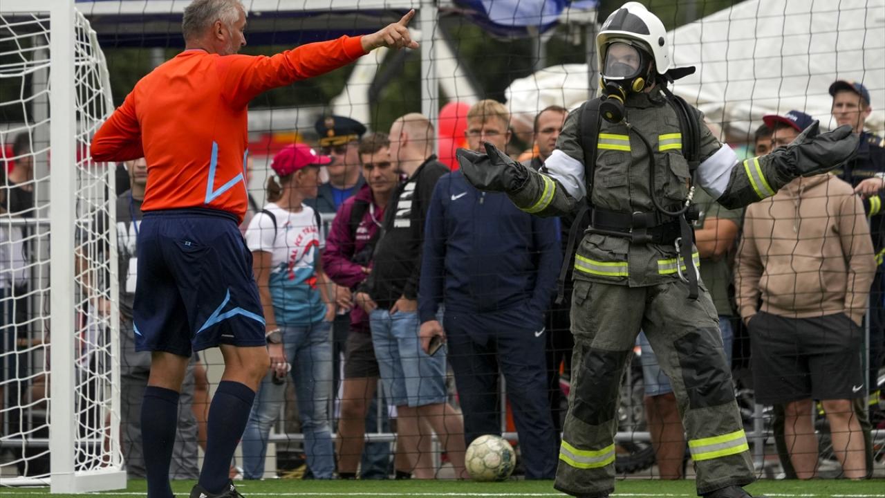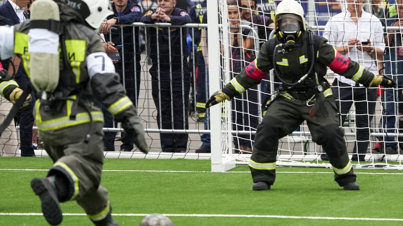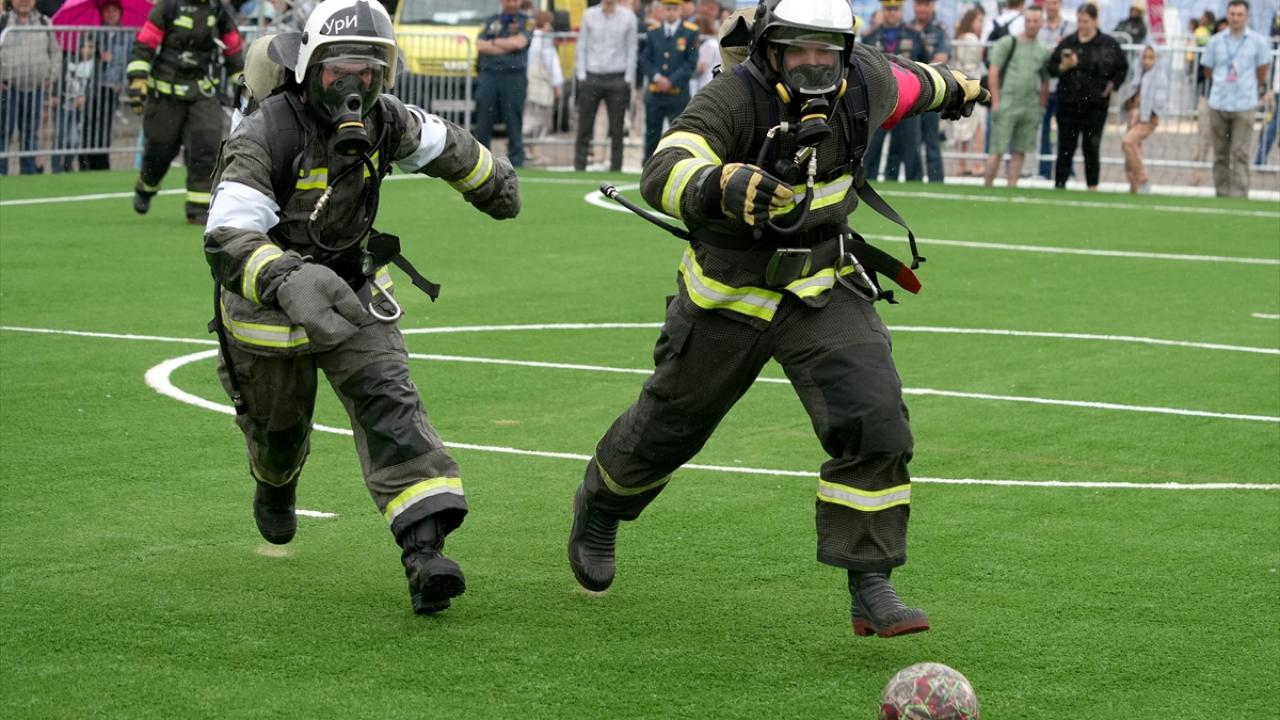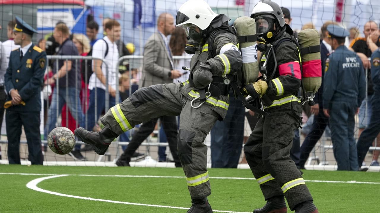 Rusyanın başkenti Moskova'da 3. Uluslararası İtfaiye ve Kurtarma Kongresi'nin kapsamında, Gorki Parkı'nda düzenlenen yangın futbolu yarışmasına çok sayıda itfaiyeci katıldı.