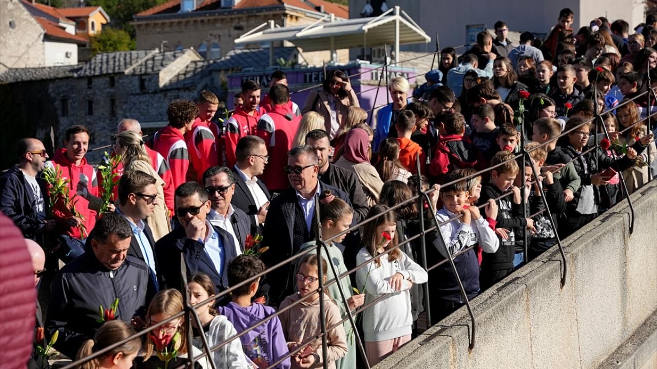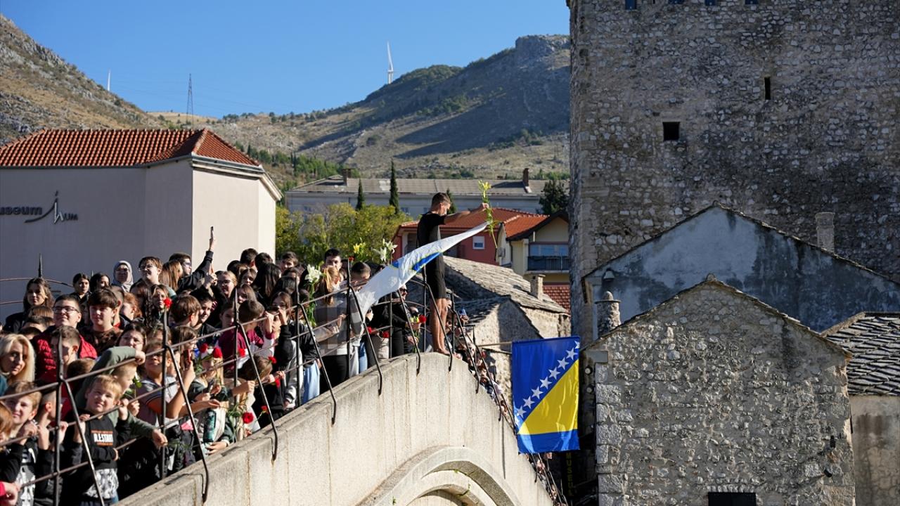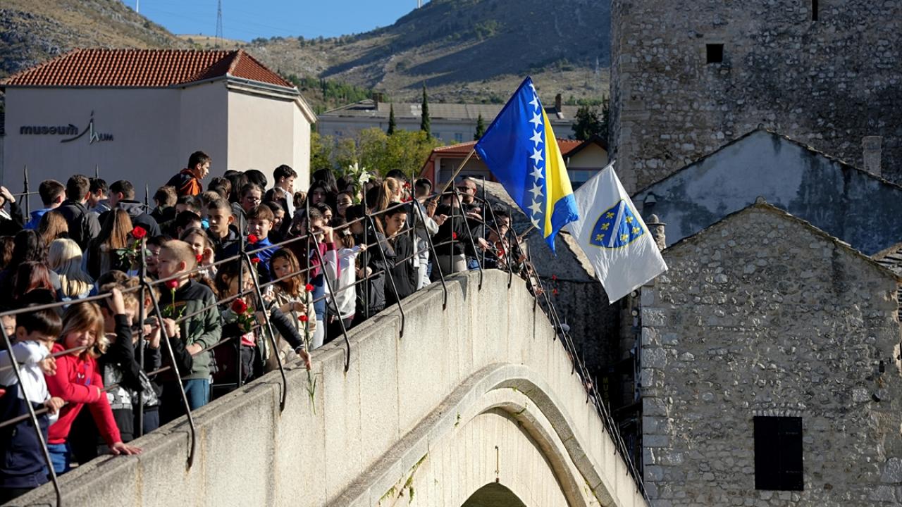 Bosna Hersek`teki tarihi Mostar Köprüsü`nün, Hırvat birliklerinin top atışları sonucu yıkılmasının 30`uncu yılı dolayısıyla anma töreni düzenlendi. Anma törenine katılanlar, köprünün altından geçen Neretva Nehri`ne karanfiller bıraktı.