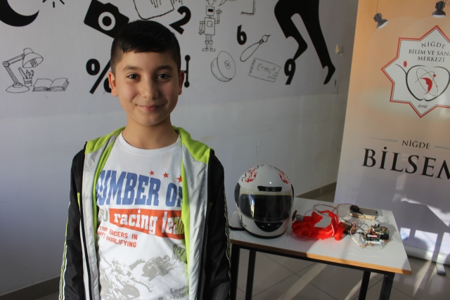 Niğde Akşemseddin Bilim ve Sanat Merkezi (BİLSEM) öğrencilerinden 13 yaşındaki Efe Gündeğer (Fotoğrafta) ve Dilek Öykü Ahraz'ın hazırladığı "Motokask" projesi, "Samsung Geleceğin Mucitleri" bilim yarışmasında Türkiye birincisi oldu.