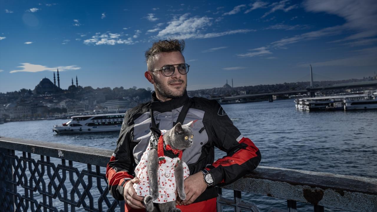 İstanbul`u kedisiyle gezen Topcu, "Gofret"i 2 aylıkken Hakkari`den sahiplendiğini, ilk yolculuklarında 1200 kilometre yol yaptıklarını anlattı.